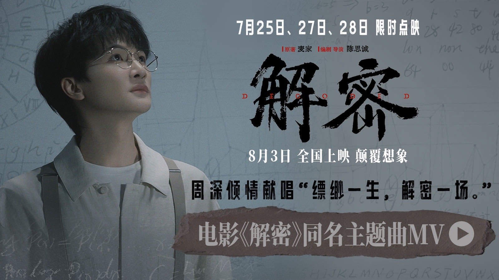 #解密主题曲MV中英双语版齐发# 电影《解密》主题曲中英双语版MV震撼登场,双重享受,现实和梦境双重加码!与的独特嗓音,仿佛解开每一个音符的秘密,让人沉醉不已。电影即将上映,这份期待,你我都值得拥有,已经迫不及待影片的院线上映了!
