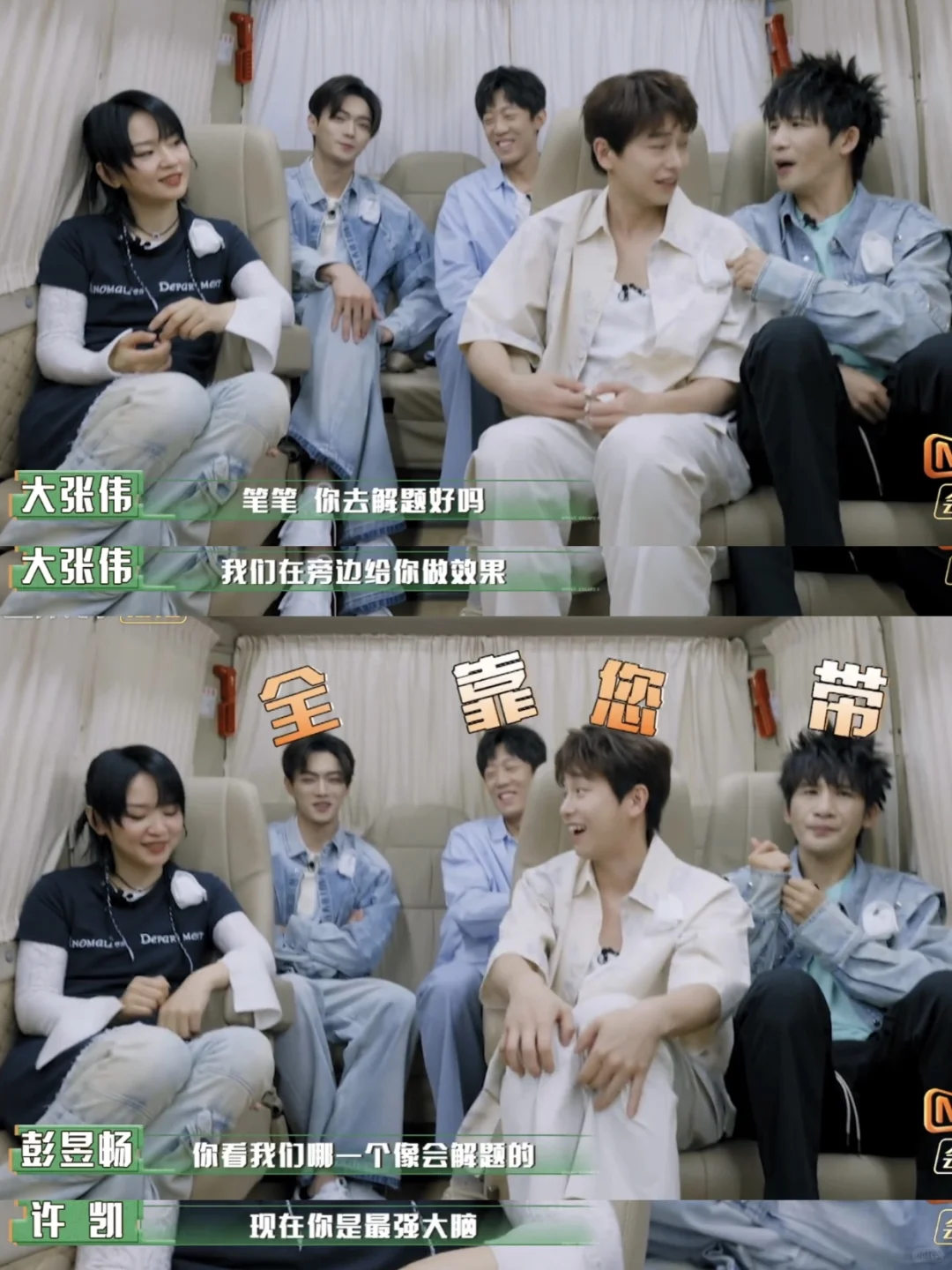 彭昱畅、许凯、陈哲远、周笔畅、大张伟 、张国伟常驻 杨幂和黄明昊两个脑力担当缺席,大家把解密的重任全交给了笔笔 彭彭:你看我们哪一个像会解题的[偷笑R]哈哈哈哈哈哈 📺《密室大逃脱6》超前聚会