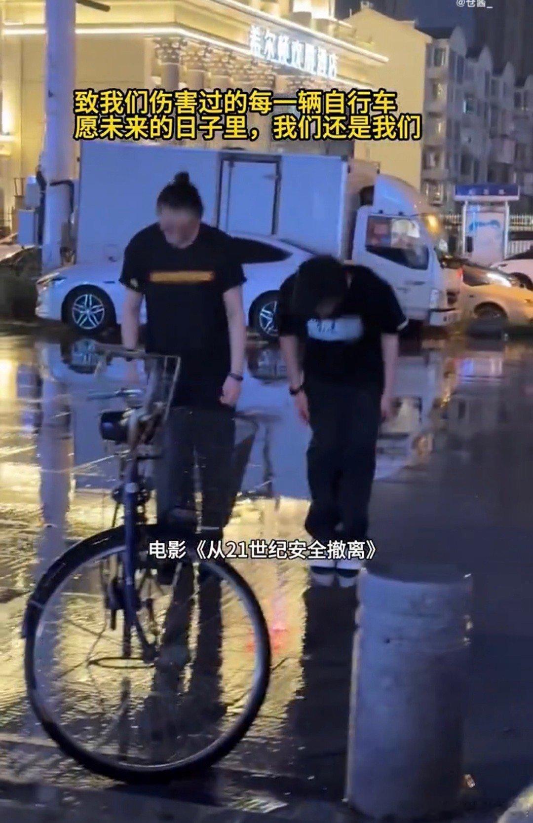 #21世纪抽象人传人现象#这让我震惊了一次又一次。大家开始玩抽象了,直接给自行车鞠躬道歉,这精神状态有点太超前了吧,这是什么新型压力释放出口吗?
