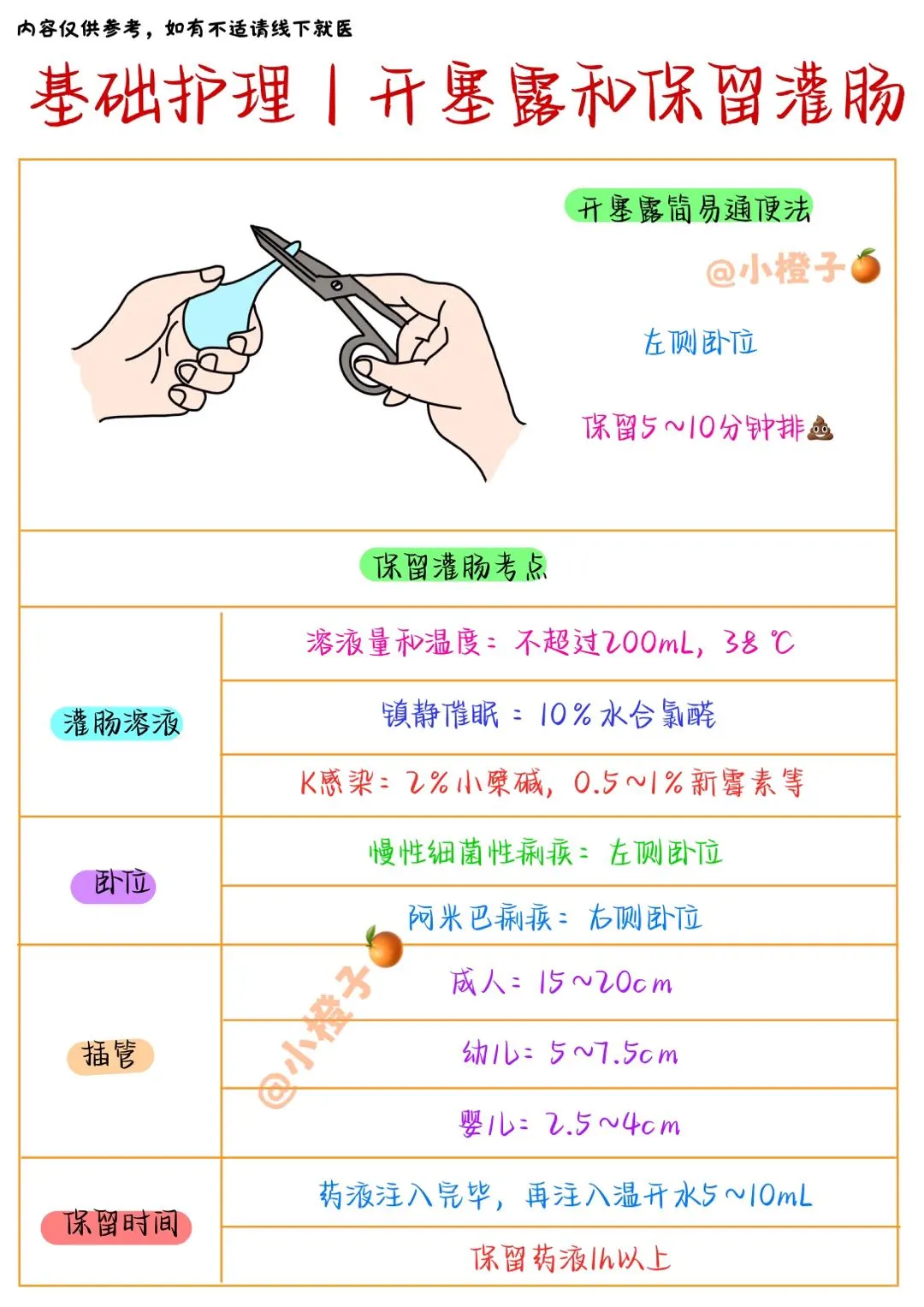 医学生笔记 小橙子🍊备考扎记 基础护理学 基础护理学笔记 知识薯实习护士 护士护师主管护师考试 灌肠 我的健康生活 健康薯