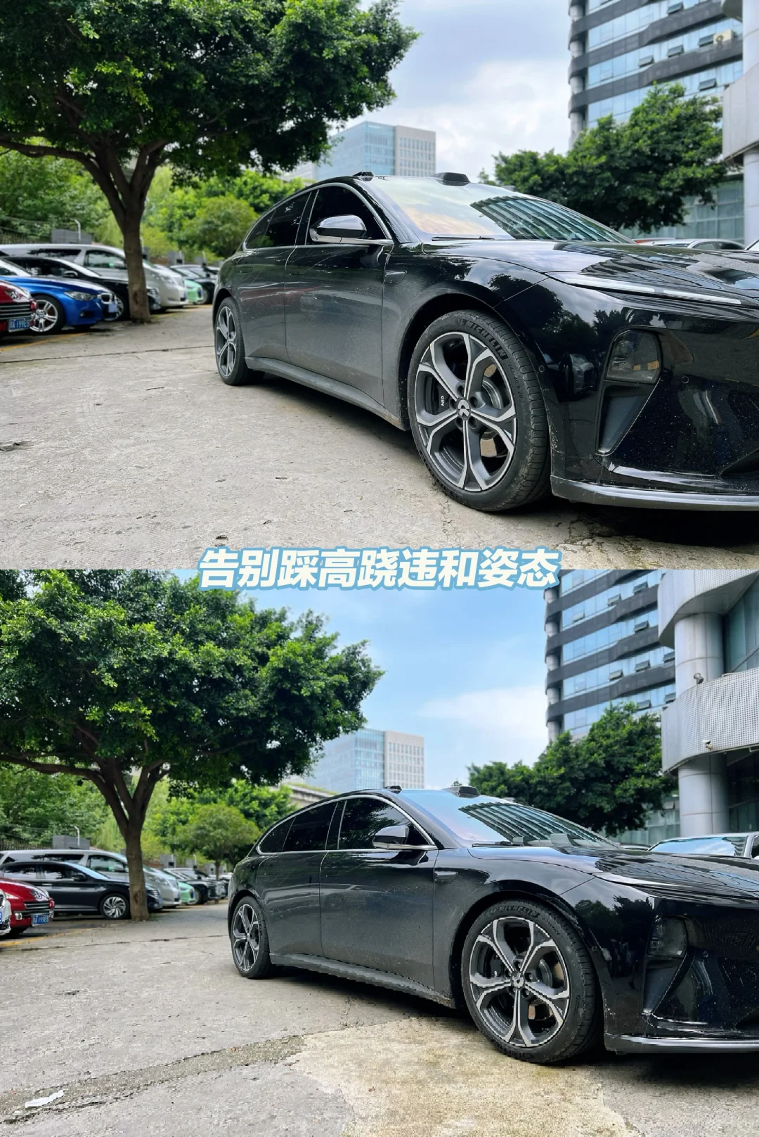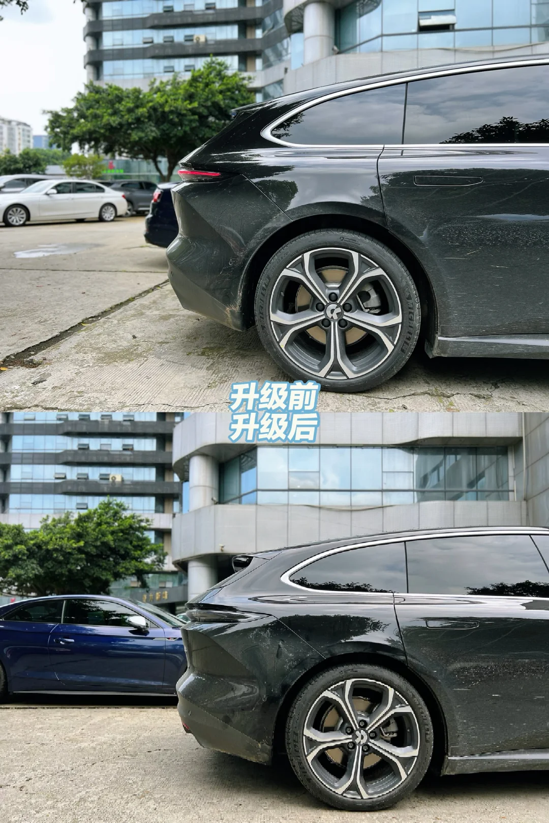 蔚来ET5T作为旅行版车型, 一经面世便受到关注和追捧, 流线的造型搭配协调的比例, 作为内燃机玩家也为之动容; 唯一美中不足便是后排颠簸, 便有几乎人手一套的RSS避震, Eibach定制弹簧配合24段阻尼, 一举改善原车弹跳颠簸的不适感, 适当降低车身姿态且不影响换电, 十多年老店单一车型案例信手拈来, 丰富的经验完善的售后无后顾之忧。
