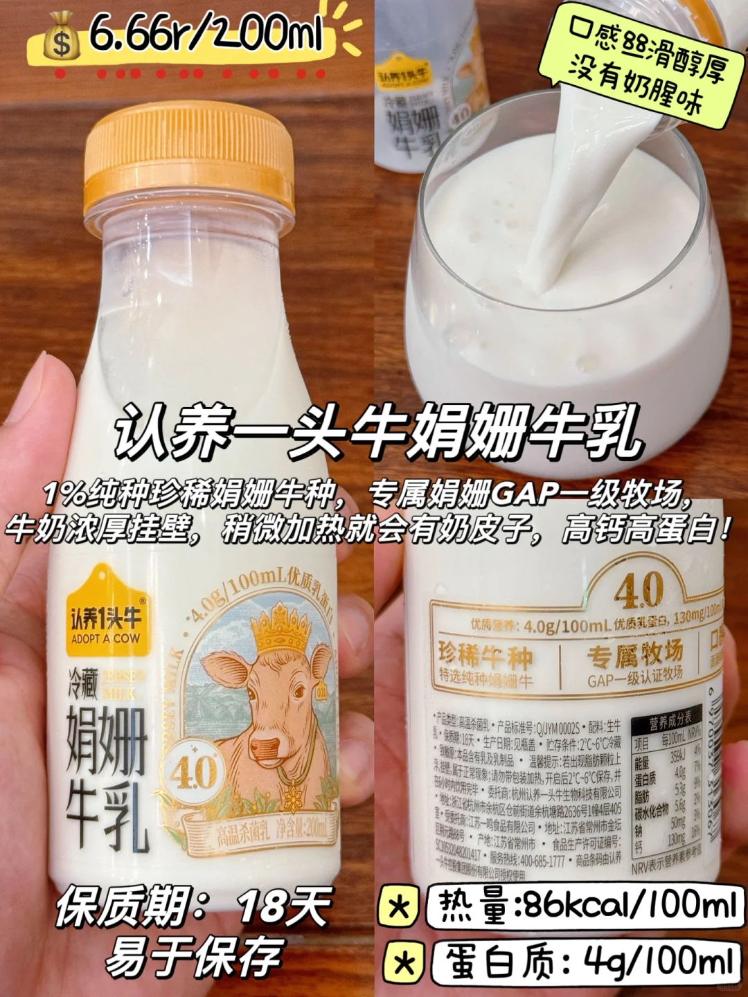 1️⃣认养一头牛娟姗牛乳 💰6.66r/200ml