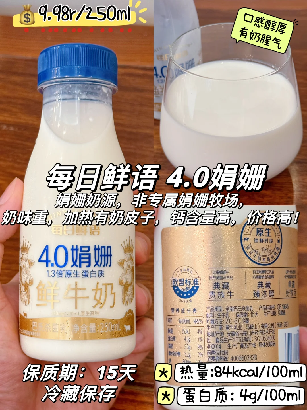 2️⃣每日鲜语 4.0娟姗💰9.98r/250ml