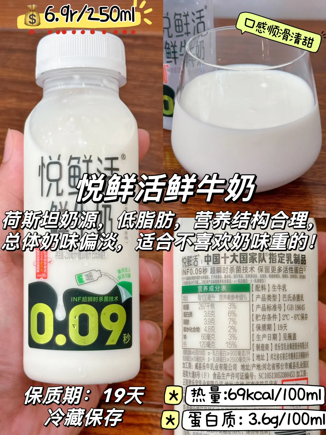 3️⃣悦鲜活鲜牛奶💰6.9r/250ml