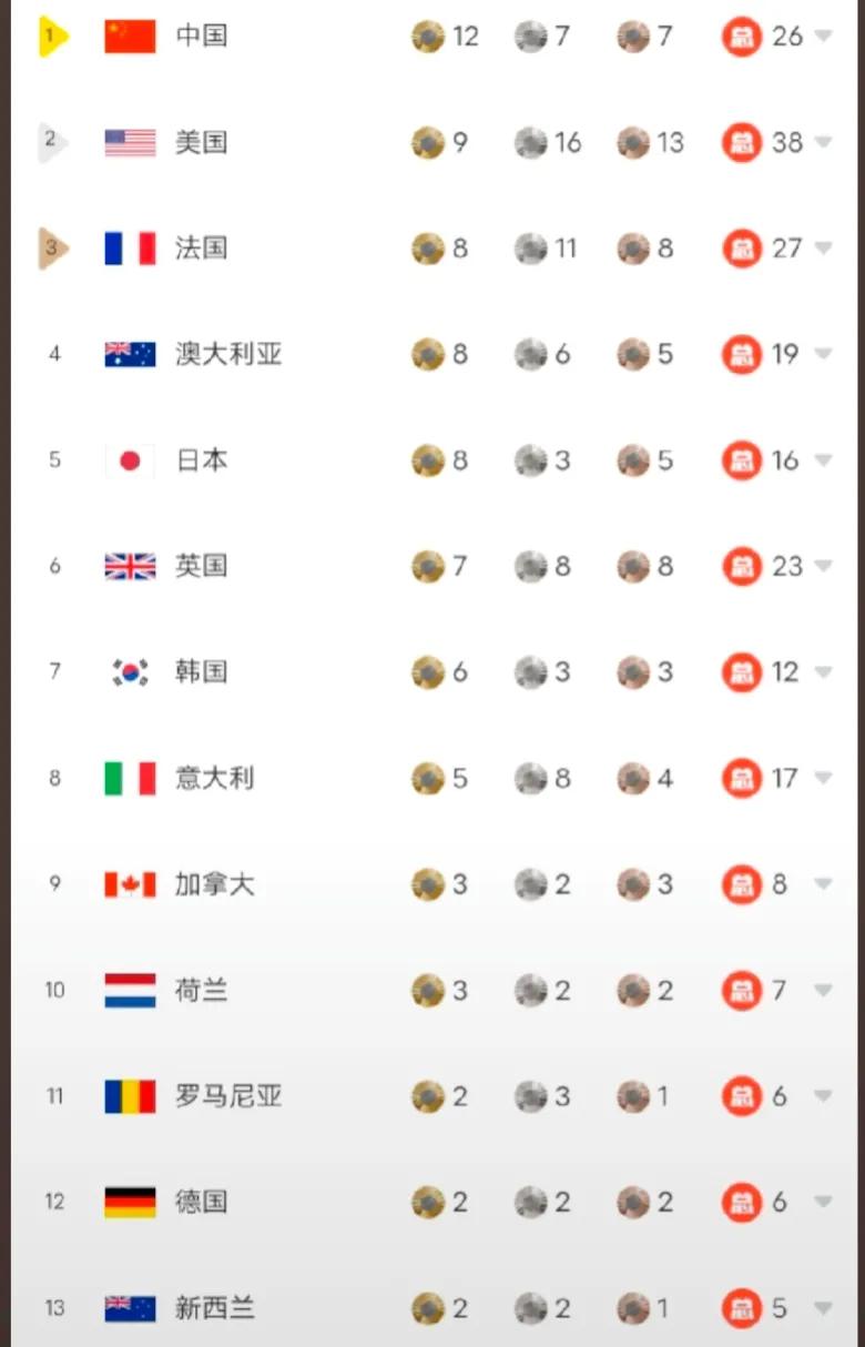原来外国媒体是按奖牌总数排的,我们一直看的都是金牌榜,都有点不习惯他们的榜单了。