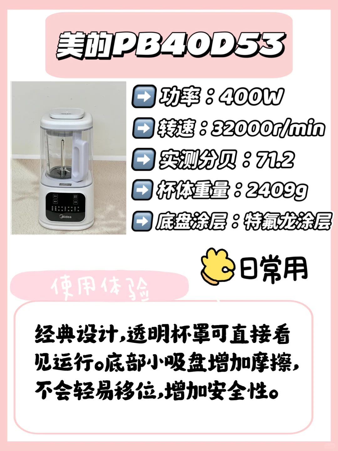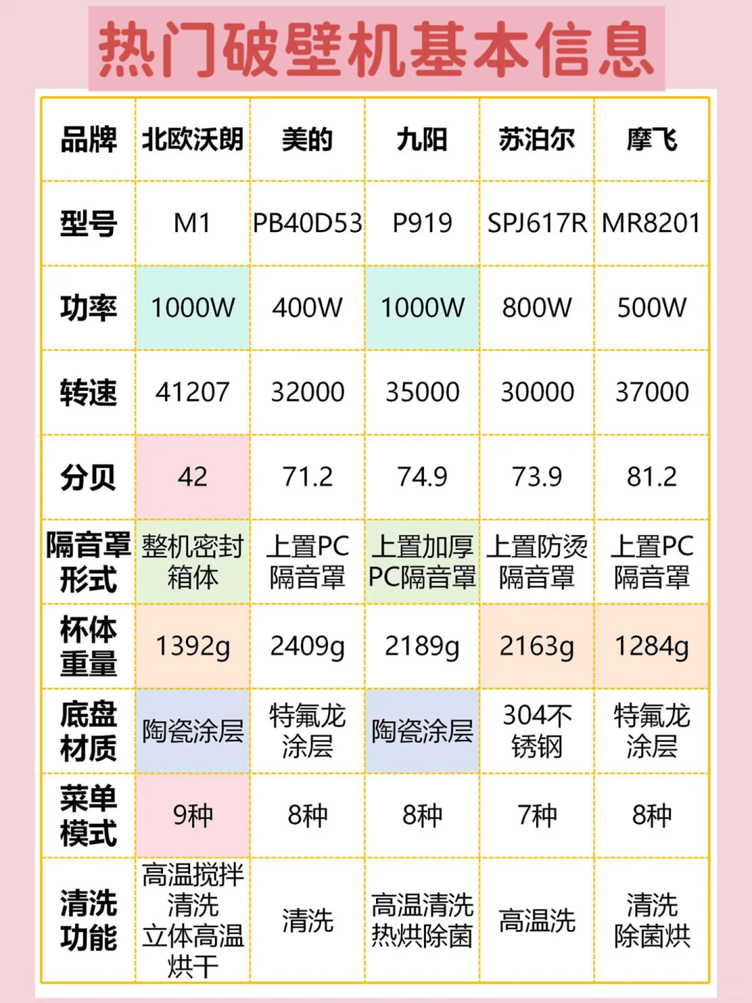破壁机品牌太多容易挑花眼,对于选择困难者更是难上加难🥹近期准备购入破壁机的友友们,一定要多多做功课后再选择购入‼️不要跟风一些风很大的破壁机,踩坑分分钟😢 柠檬🍋在这里整理了一份热门静音📵破壁机数据和体验感受,有需要的赶紧码住吧😉🫵🏻 ✅✅北欧沃朗M1破壁机 ✅九阳P919破壁机 ✅美的PB40D53破壁机 ✅苏泊尔SPJ617R破壁机 ✅摩飞MR8201破壁机