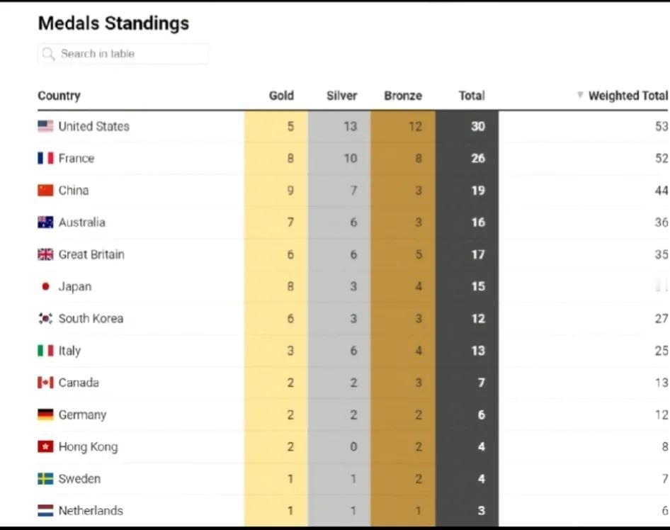 首先奥运官网给出来的金牌榜跟我们看的一样,所以大家都习惯了这种金牌榜,也是世界公用榜单,而有些国家或者媒体的榜单却是别具一格。