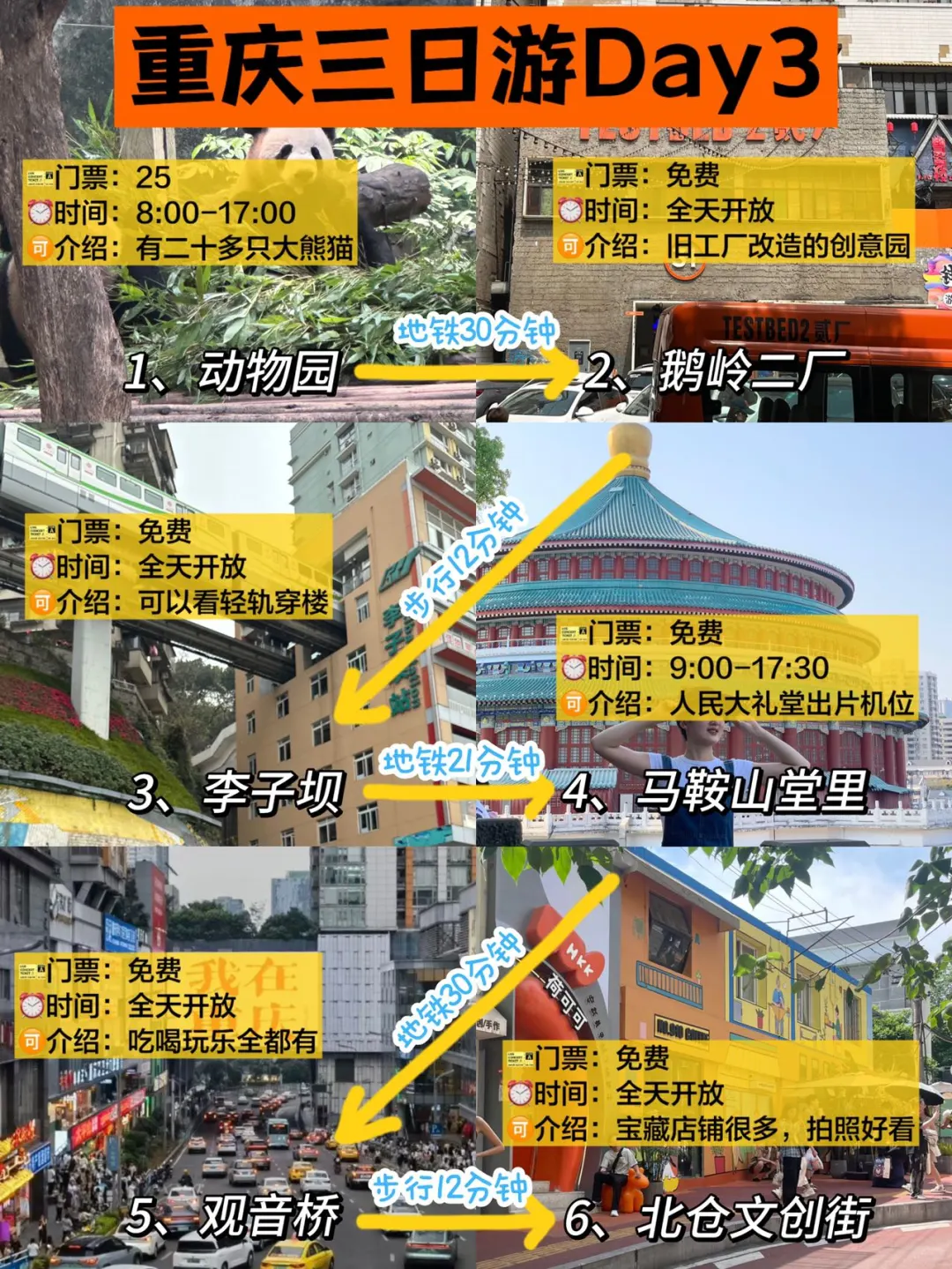🔹Day3:重庆动物园→鹅岭二厂→李子坝→马鞍山堂里→观音桥→北仓文创街区