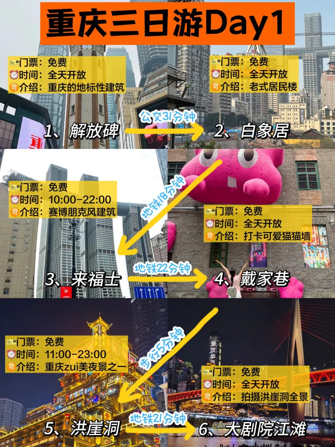5、重庆主城区内游玩真的完全没必要报团,交通方便,做好攻略自由行就可以了