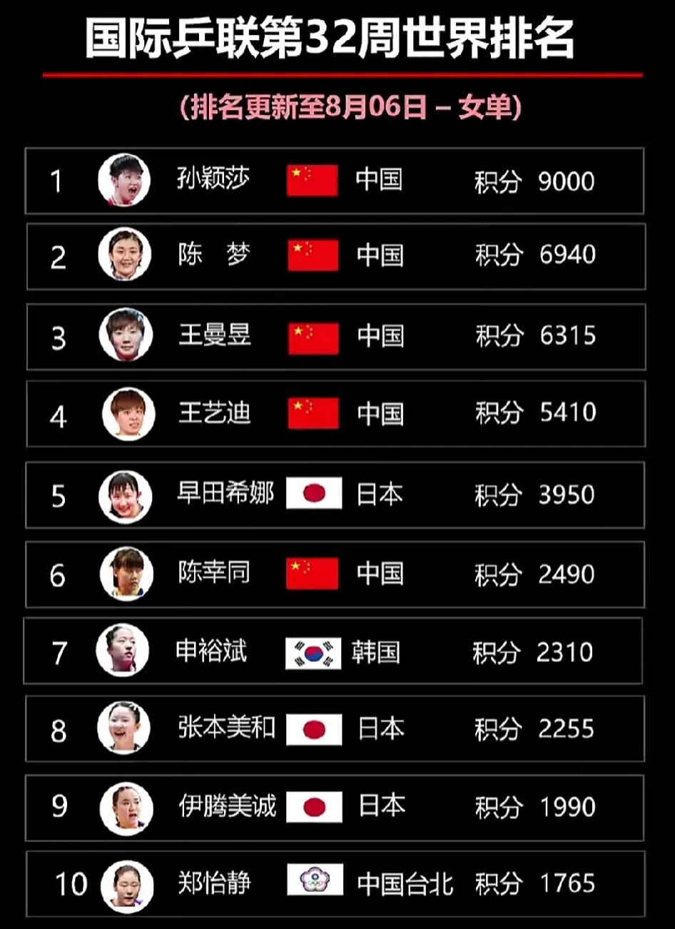 对于男乒来说真的是“狼来了”。在今天公布的男女乒乓球世界排名中我们可以看到,女乒是独孤求败的存在,前四都是我们,早田希娜排第五对我们也构不成多大威胁。
