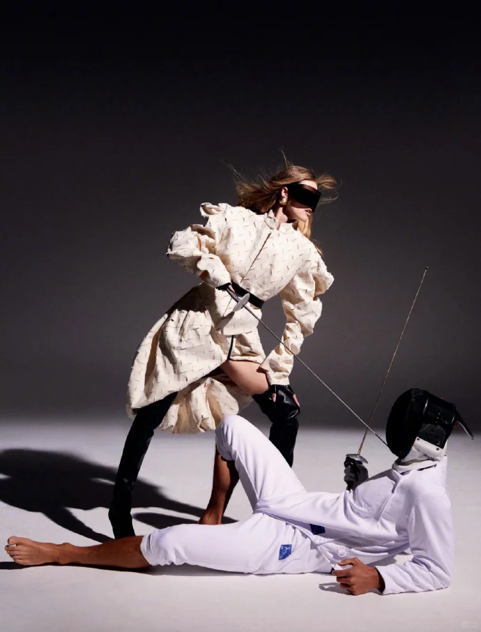 Tatler September 2024 奥运主题时装片,模特Kim Riekenberg搭档运动型男出镜,简单传统的拍摄。摄影: Daniel Sachon