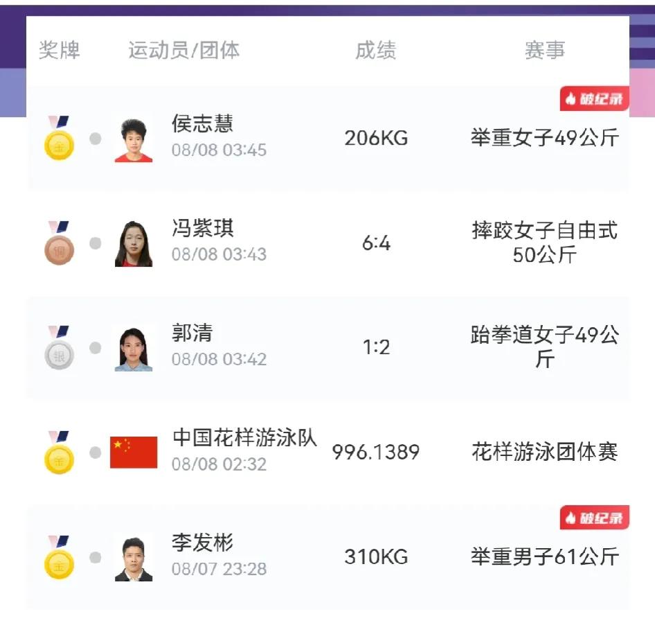 1、一晚上狂夺3金2银1铜牌,但依旧没能超过美国代表团拿,其中两金更是破记录获得,但美国也丝毫不差,继续保持2金的领先优势