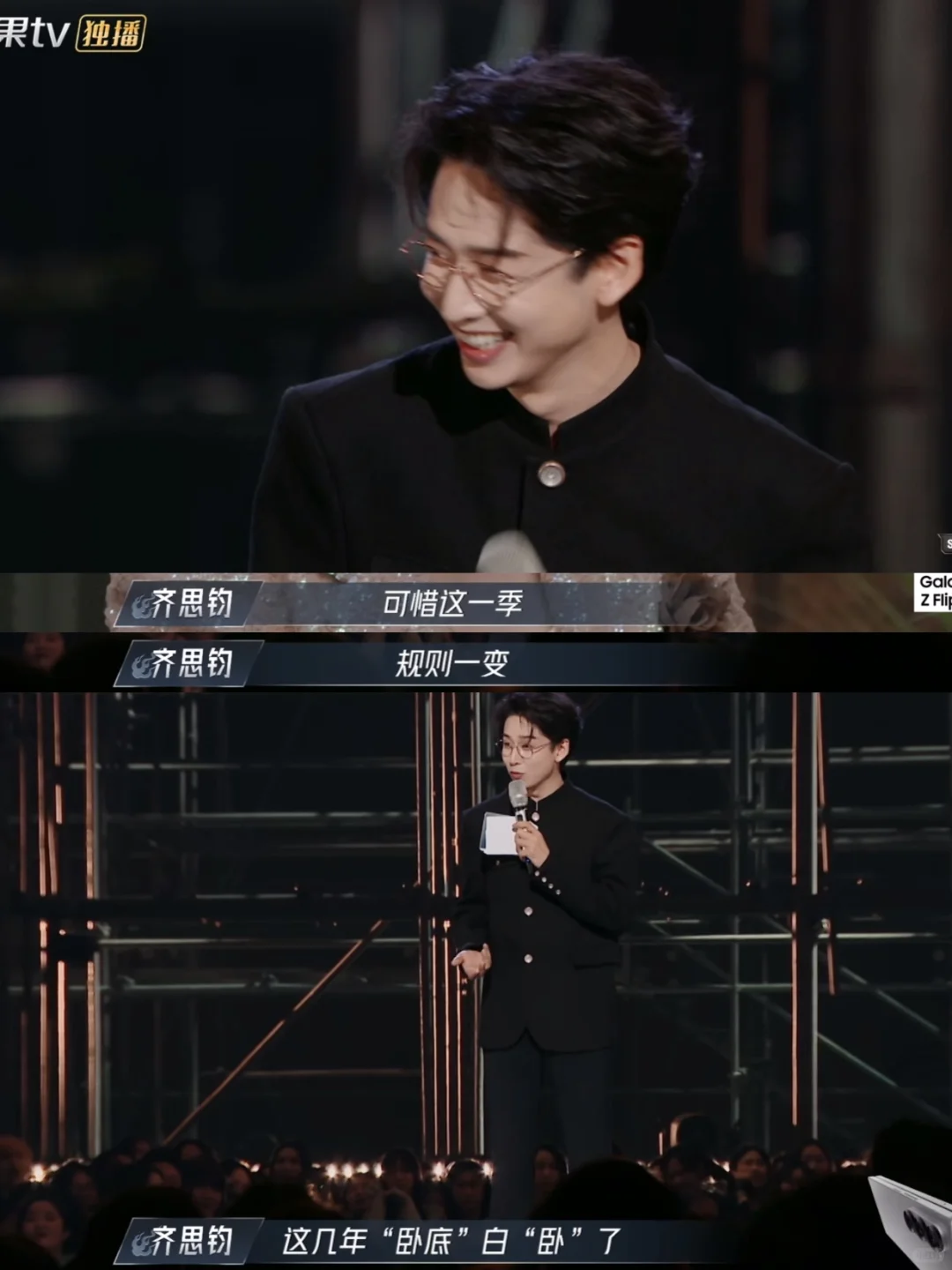 ✅齐思钧:还有一位弟弟,他在很多年前,就已经派了一位好兄弟,“卧底”在这个节目里面,这个“卧底”,一直以主持人的身份站在这里,可惜这一季,规则这几年“卧底”白“卧”了🤣 ✅齐思钧大方地介绍自家弟弟有种莫名的感动 (突然发现我最近看的综艺居然都有院人!) 📺《披荆斩棘的哥哥4》第1期