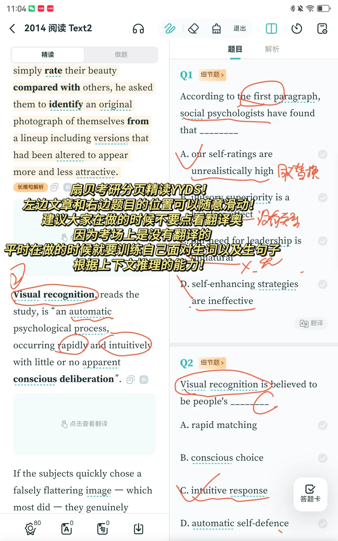 🎉🎉跟我阅读带练的同学,如果能完全理解就不用听课,因为方法论的应用都在文章中、题目中有体现。个别有疑问的题目或选项再去听一下课。总之❗❗一定要bao证所有的题目都弄懂。