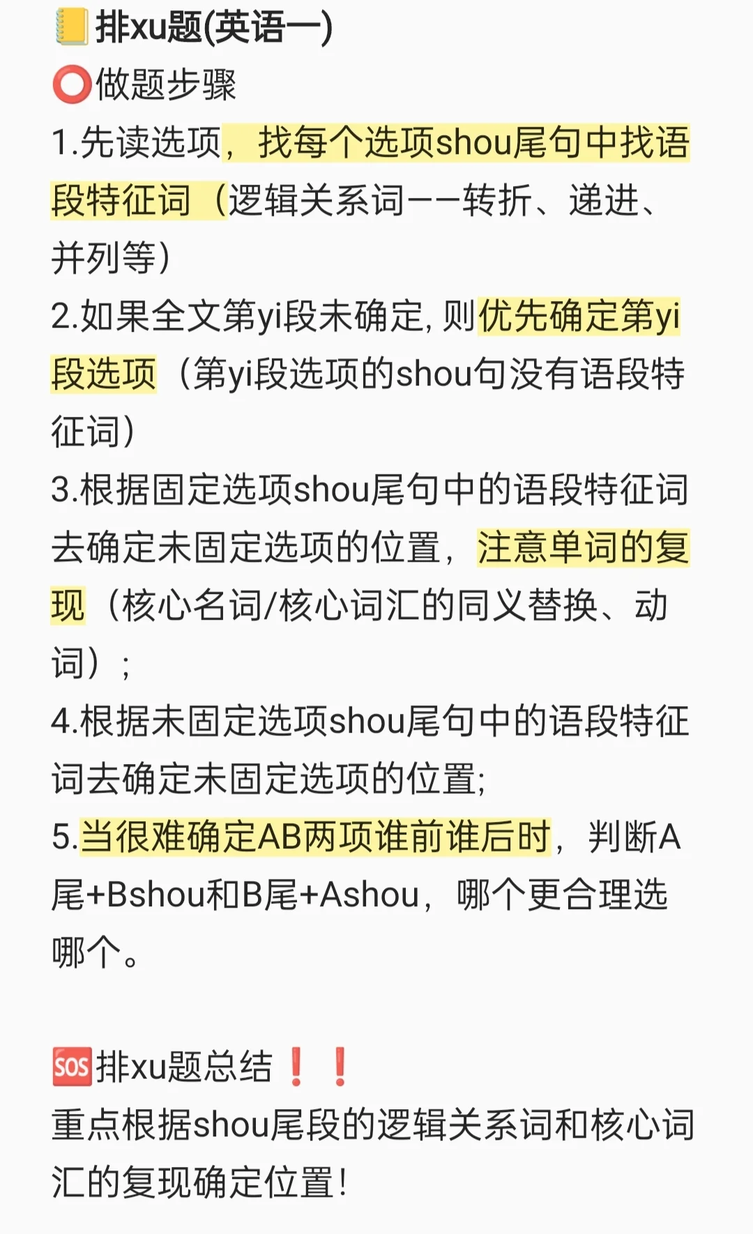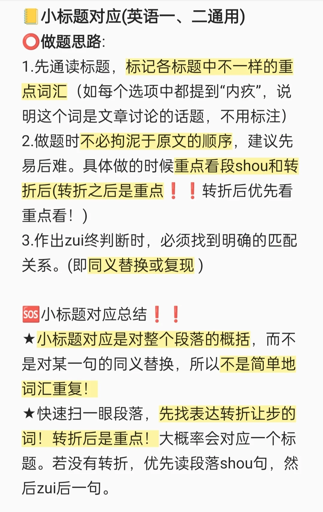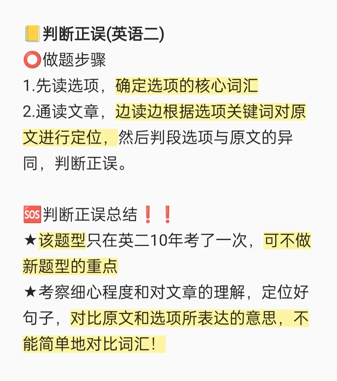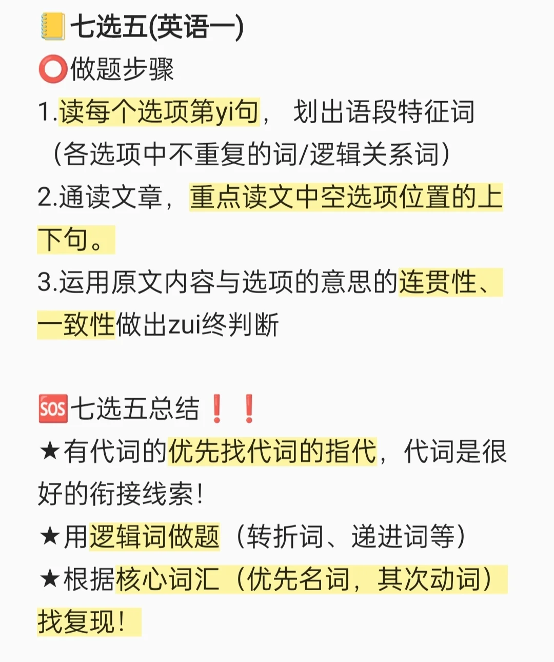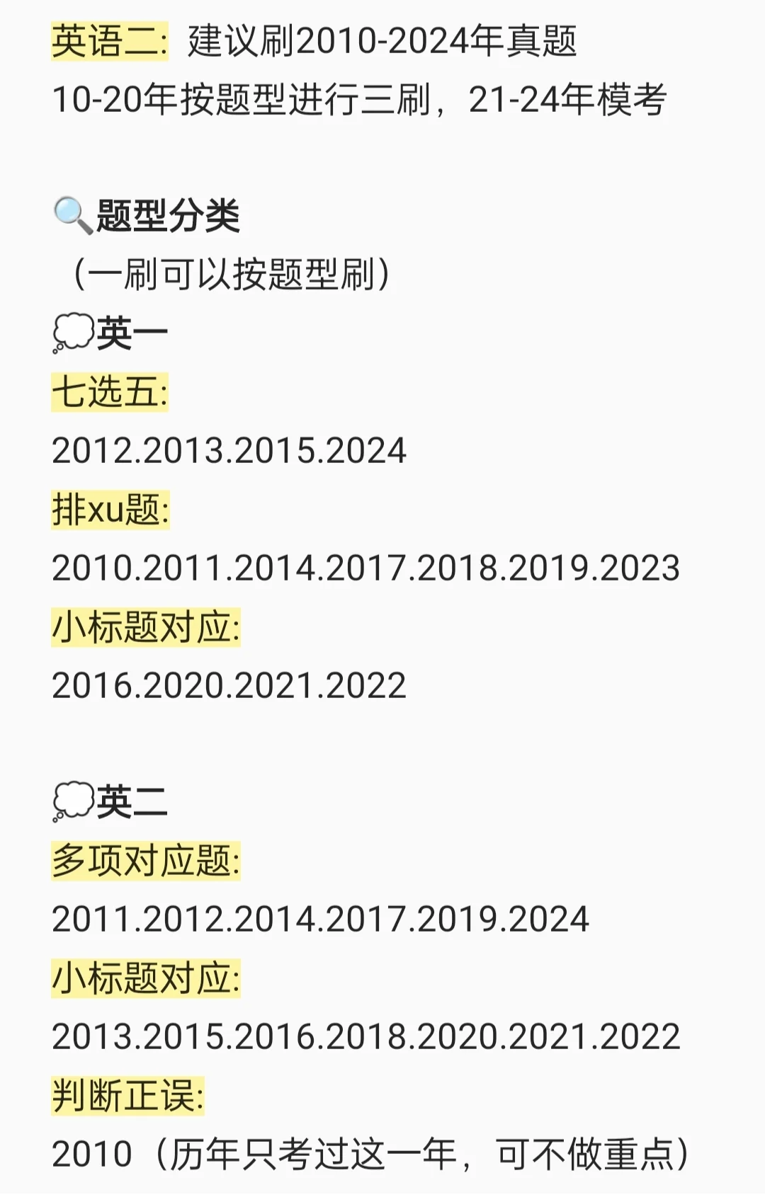 halo宝子们!小三门备考顺序我建议按照先新题型——翻译——完型的顺序来。新题型先听刘琦老师的方法论,然后按题型逐篇做真题!(小三门的详细时间规划看上篇笔记)。今天详细给大家分享英一英二新题型的题型分类以及做题技巧!!