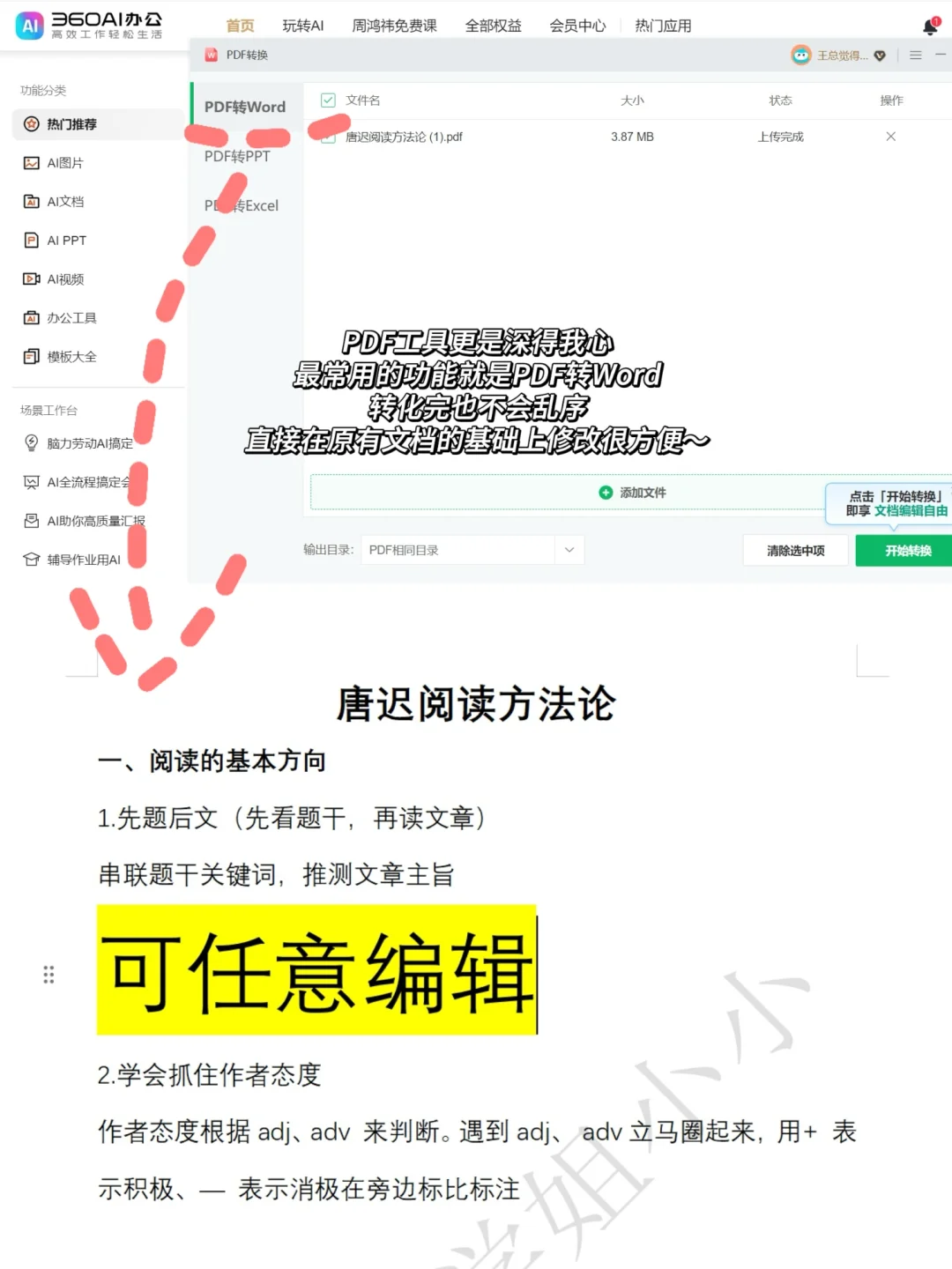 还有大家经常找到的笔记基本上都是PDF格式(原创确实不易),如果大家想根据自己的思路做一些修改的话,可以用PDF转换功能,生成Excel,word,ppt等任意文档,就可以在上面随意编辑啦~会员也很便宜,每天6毛即可体验完整功能~