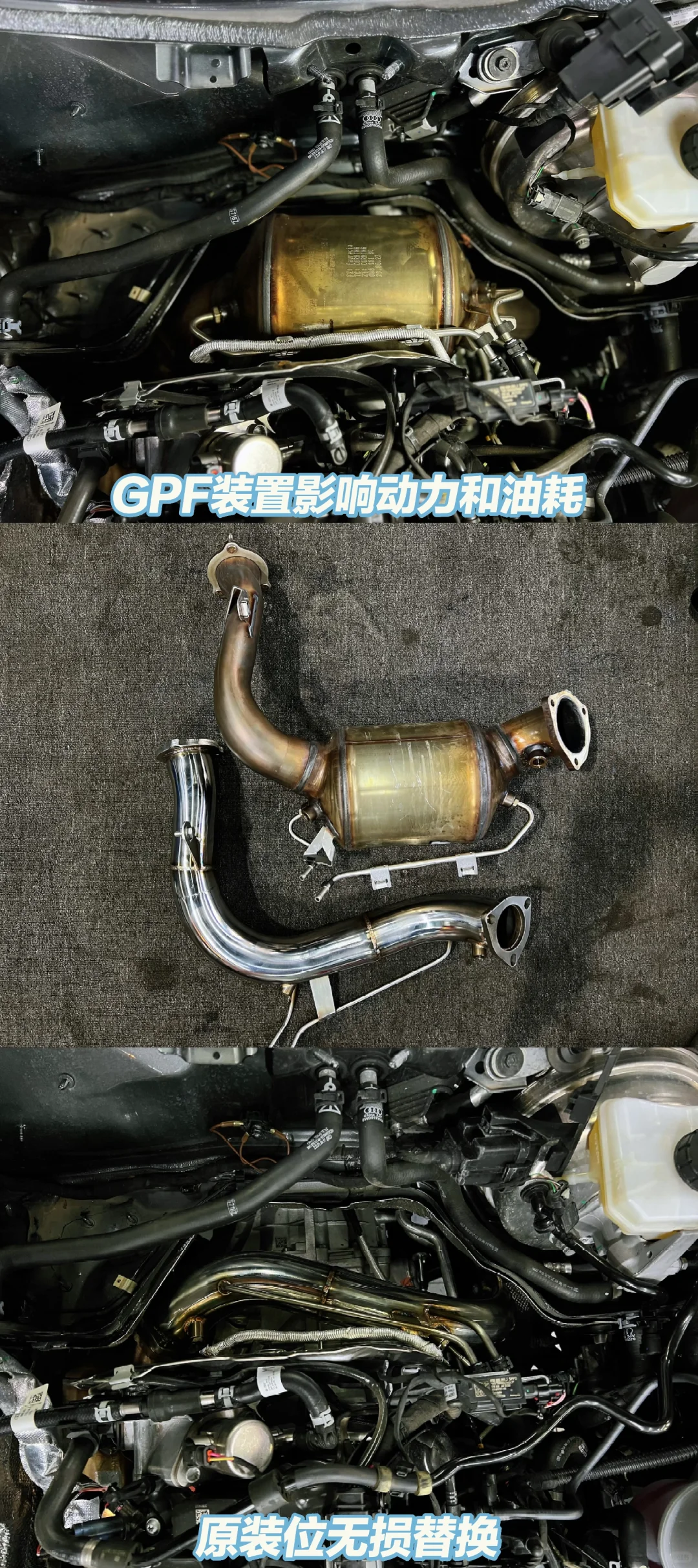 1、前管去除GPF颗粒捕捉器,