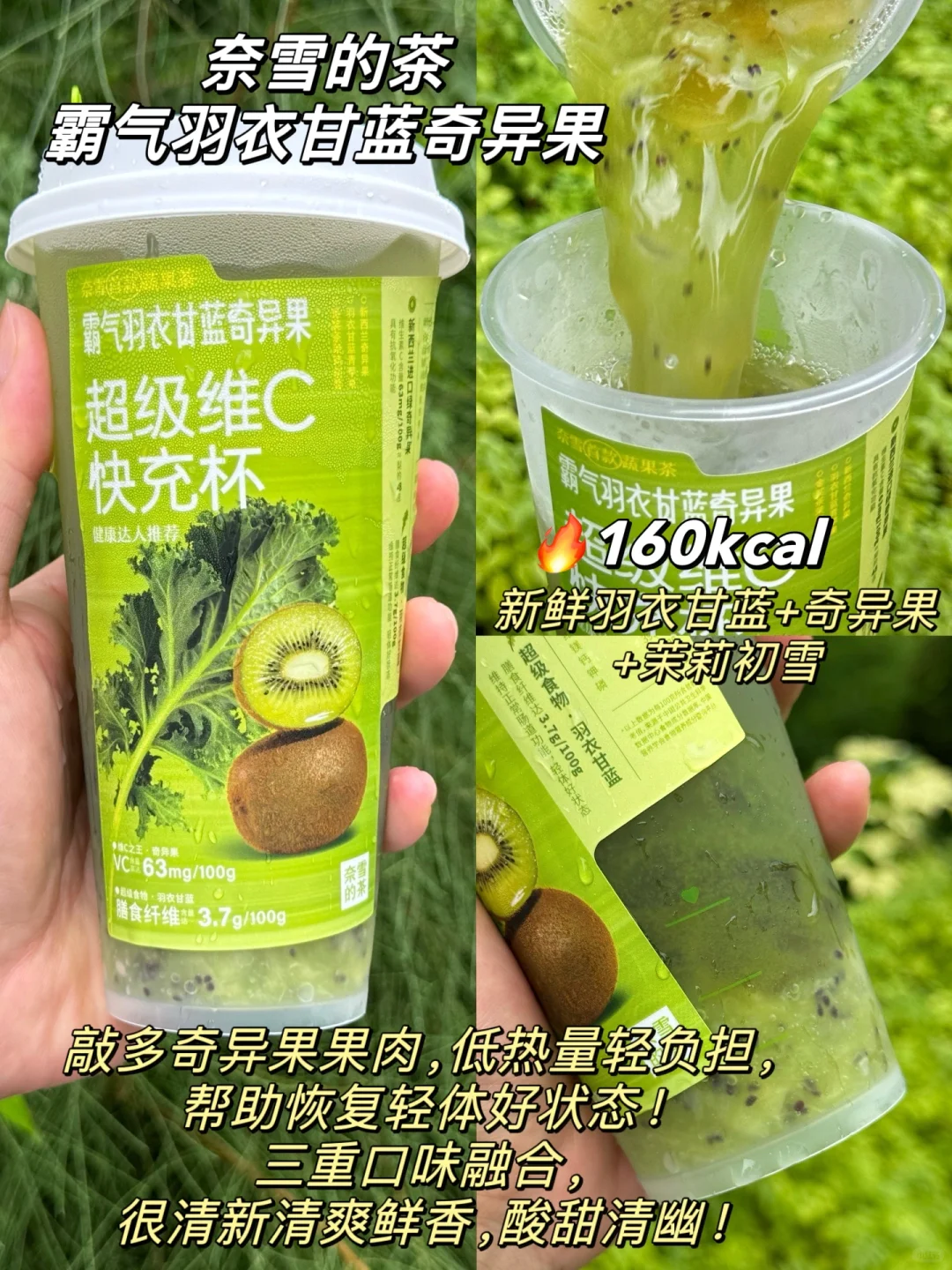 1⃣奈雪的茶:霸气羽衣甘蓝奇异果,不另外加糖:160🔥kcal