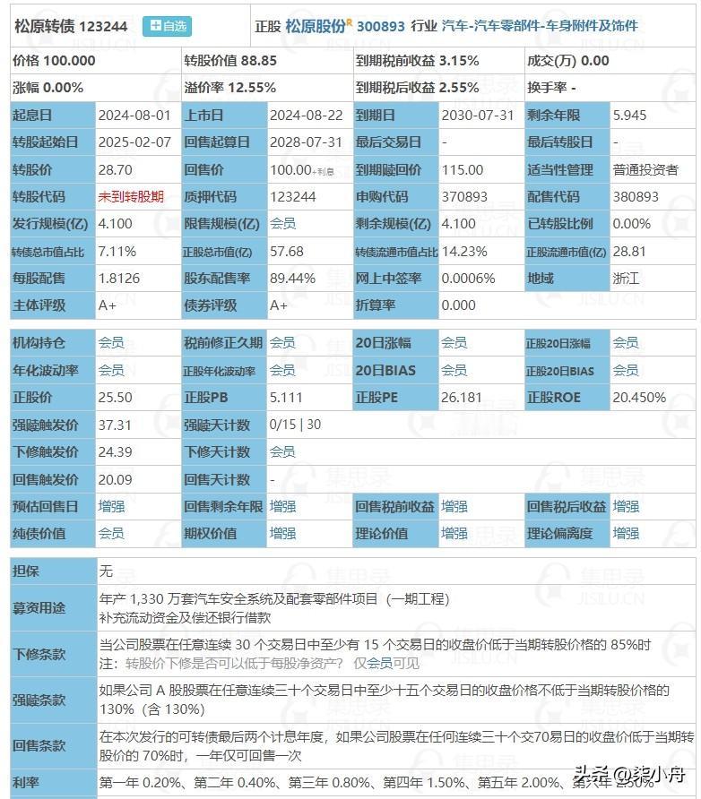 8月22日松原转账上市。根据当前市场情绪及可转债交易行情,松原转债上市时预计会有20%的溢价,预计上市价值为106.6元。开盘后价格如与预计价值低很多可积极参与,反之应慎重。#投资理财##可转债#
