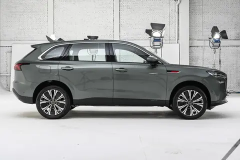 在外观设计上,红旗HS6 PHEV(用车口碑)延续了家族式的东方豪华基因,却又不乏创新表达。封闭式前脸之上,12根直瀑式镀铬饰条灵感源自祈年殿廊柱,搭配居中矗立的红色旗标,既彰显了品牌的文化底蕴,又赋予车辆强烈的视觉气场。两侧上扬的龙眼前大灯与“龙须”LED日行灯遥相呼应,如同点睛之笔,让整车前脸兼具霸气与灵动。底部熏黑梯形下格栅与两侧导风槽的设计,不仅优化了空气动力学性能,更强化了运动质感,使这款中大型SUV在沉稳中透着活力。车身侧面流畅的线条从车头延伸至车尾,搭配大尺寸轮毂与悬浮式车顶,勾勒出舒展大气的轮廓;车尾贯穿式尾灯与双边共两出排气布局,既保证了视觉完整性,又呼应了其强劲的动力性能,整体设计将传统符号与现代审美融合。