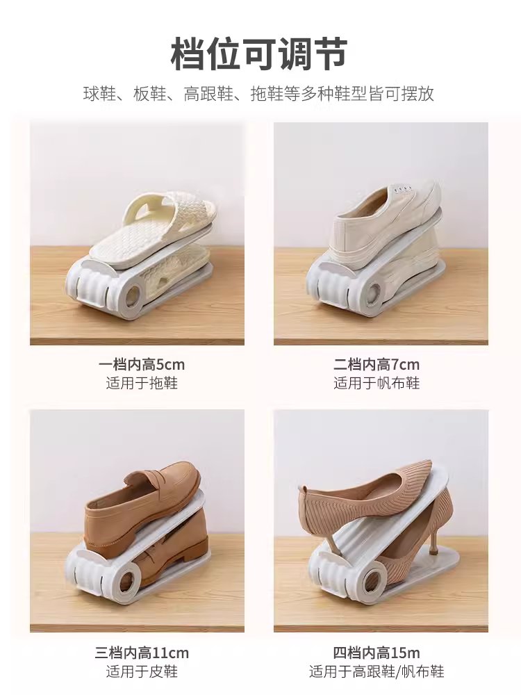 这个双层鞋架的实用性简直绝了👍!它就如同一个神奇的魔法道具一般,能够快速地让那些杂乱无章的鞋子变得整整齐齐、井然有序🤗。它的材质那可是相当的坚固耐用👏,无论你放置多么重或者多么特别的鞋子,它都能稳稳地承载,完全不用担心它会出现摇晃或者损坏的情况😎。