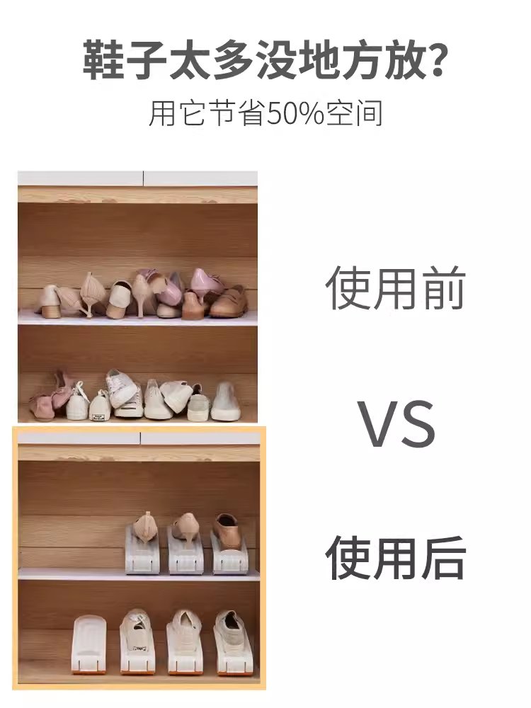 其双层的巧妙设计真的是太赞了👏!充分地利用了有限的空间,将原本凌乱不堪的角落瞬间打造得整洁又清爽🤩。而且哦,它的容量真的超级大呀🌈!不管是各种各样的运动鞋👟、精致的高跟鞋👠,还是舒适的平底鞋🥿,都能轻而易举地在这个双层鞋架上找到属于它们的位置,被妥善地放置和收纳💖。