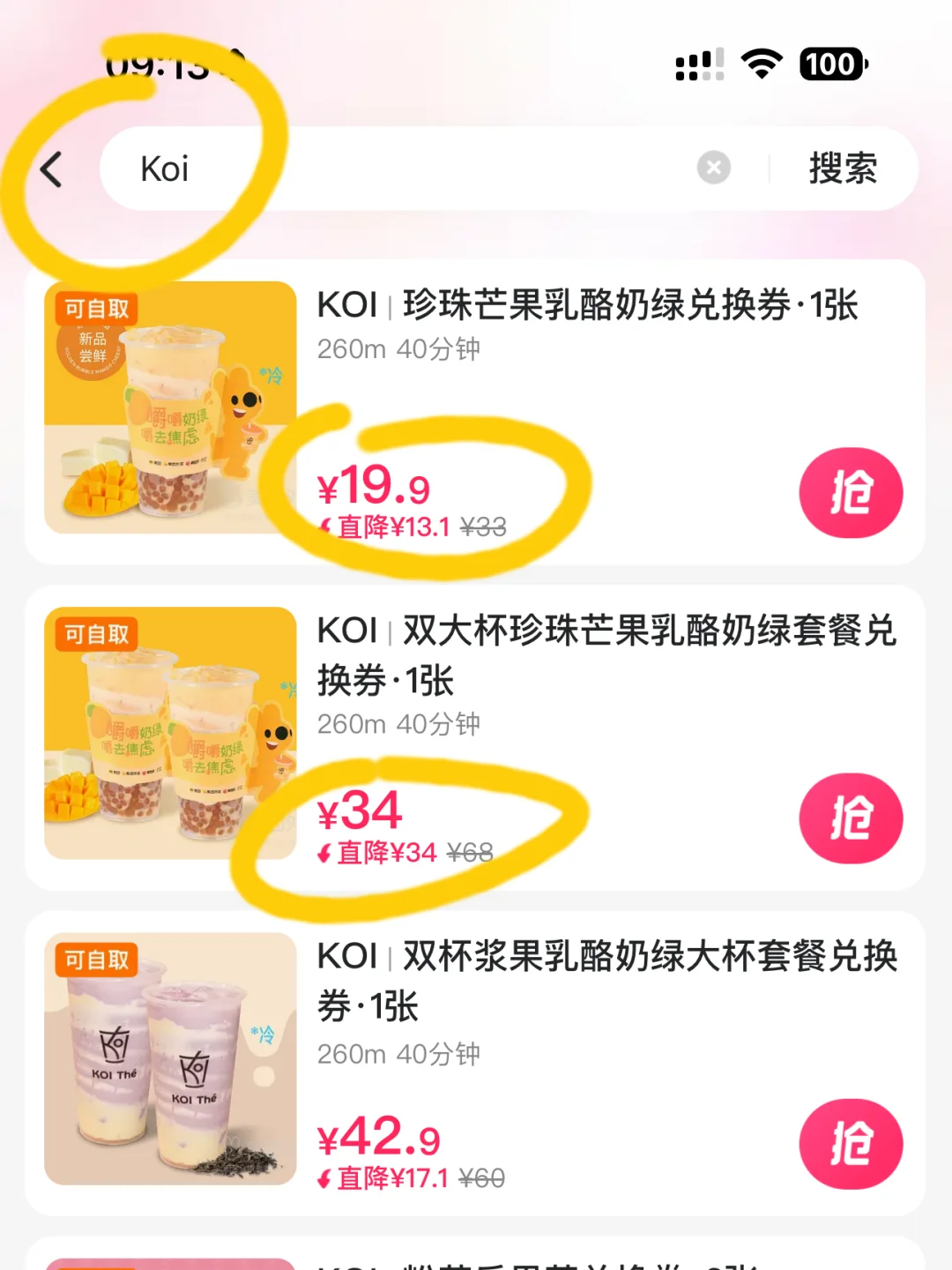这次就给我蹲到梁永棋KOI果奶乳酪系列,全网只有在美团app有卖而且还有活动价,双杯5折,单杯6折!