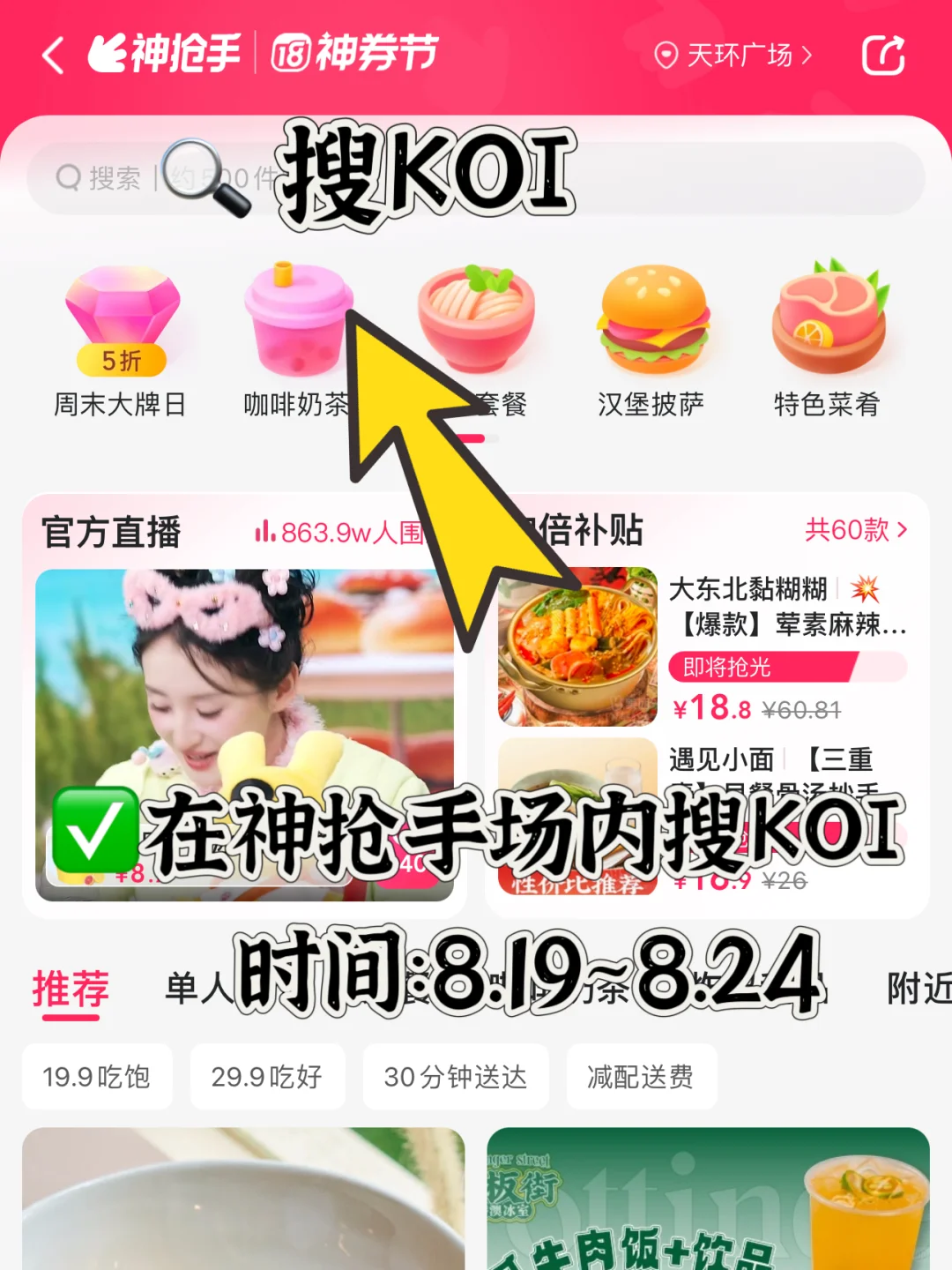 ⭕️打开美团app搜🔍85711,进入神抢手专区,再搜🔍KOI直接抢卷,真的好划算!