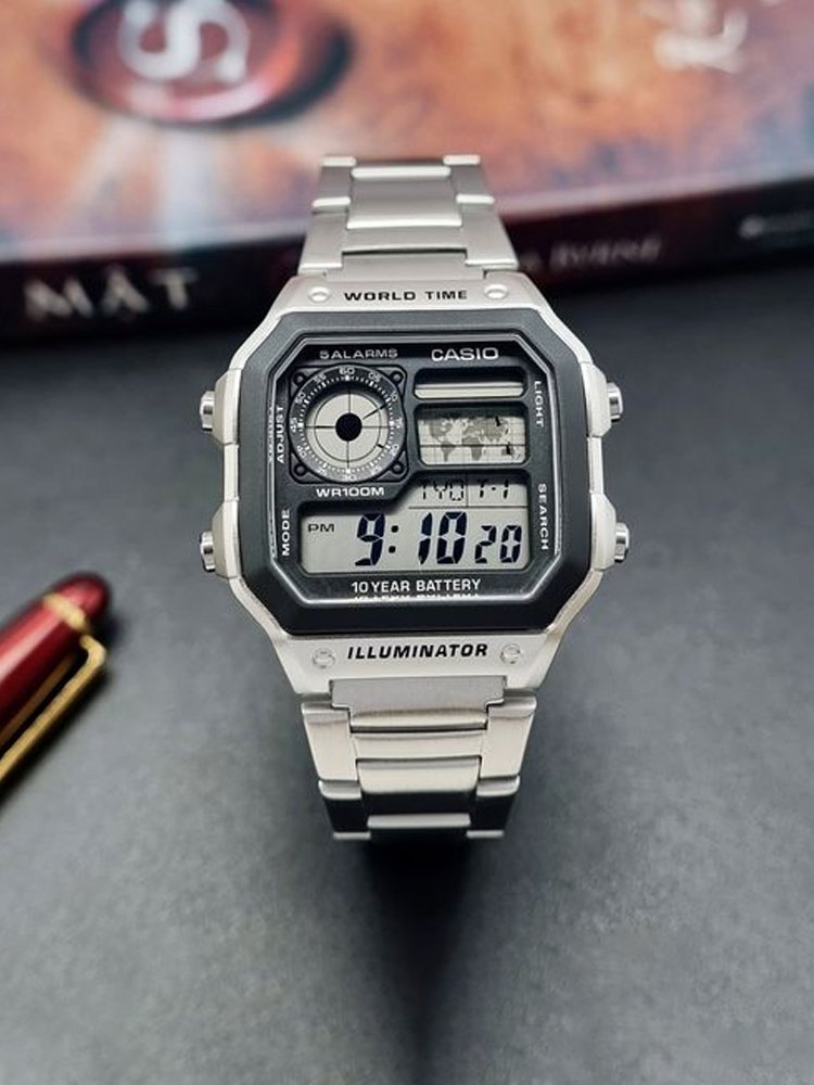 复古风十足的方形表壳,潮流现代的机械设计搭载复古风格,金属材质更显低调气质,精巧的世界地图设计满足视觉体验,手表还搭载了LED照明功能,即使再黑暗环境中也能轻松看时间,世界时间、闹铃、秒表、全自动日历等功能通通在线,潮流又实用