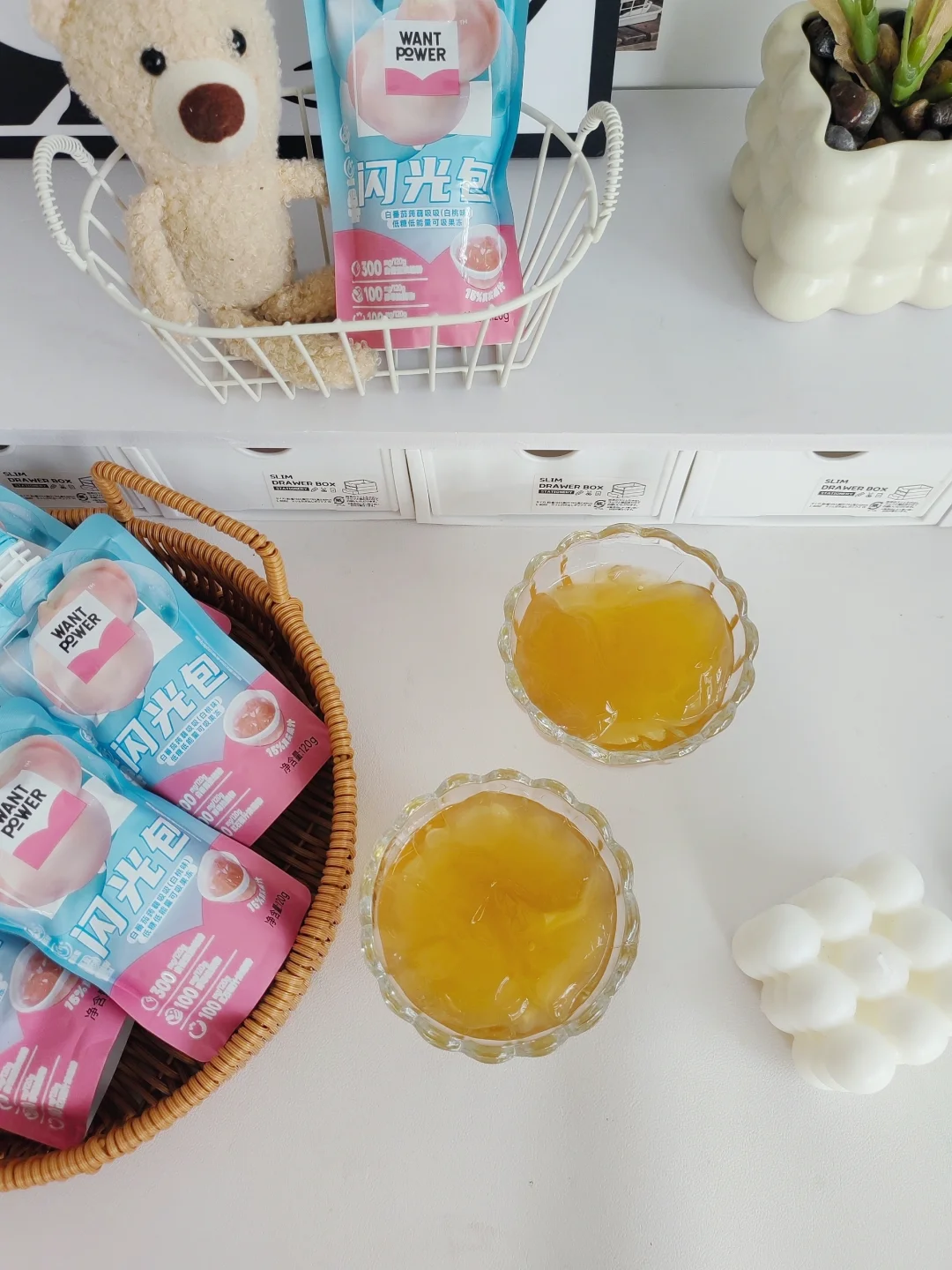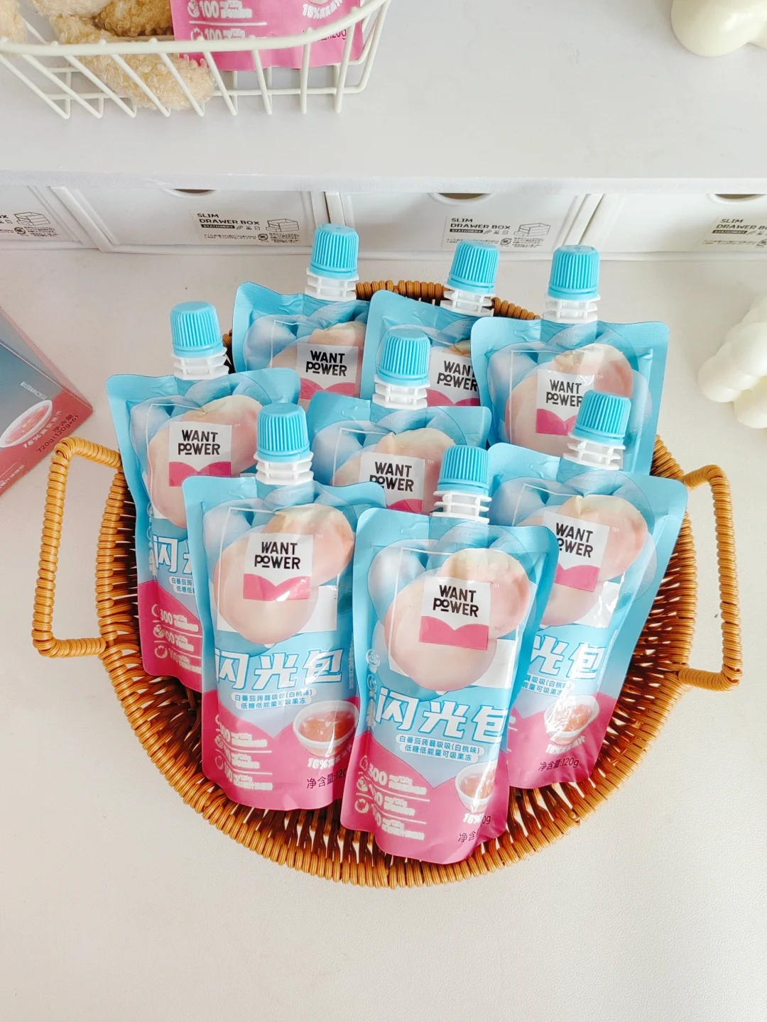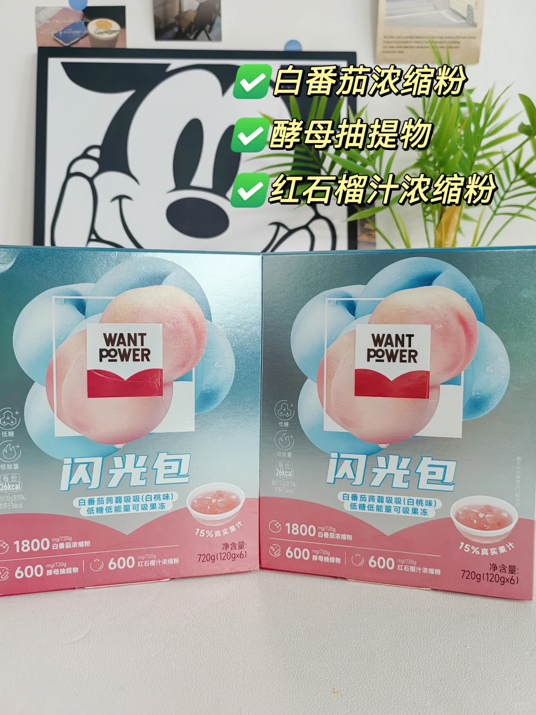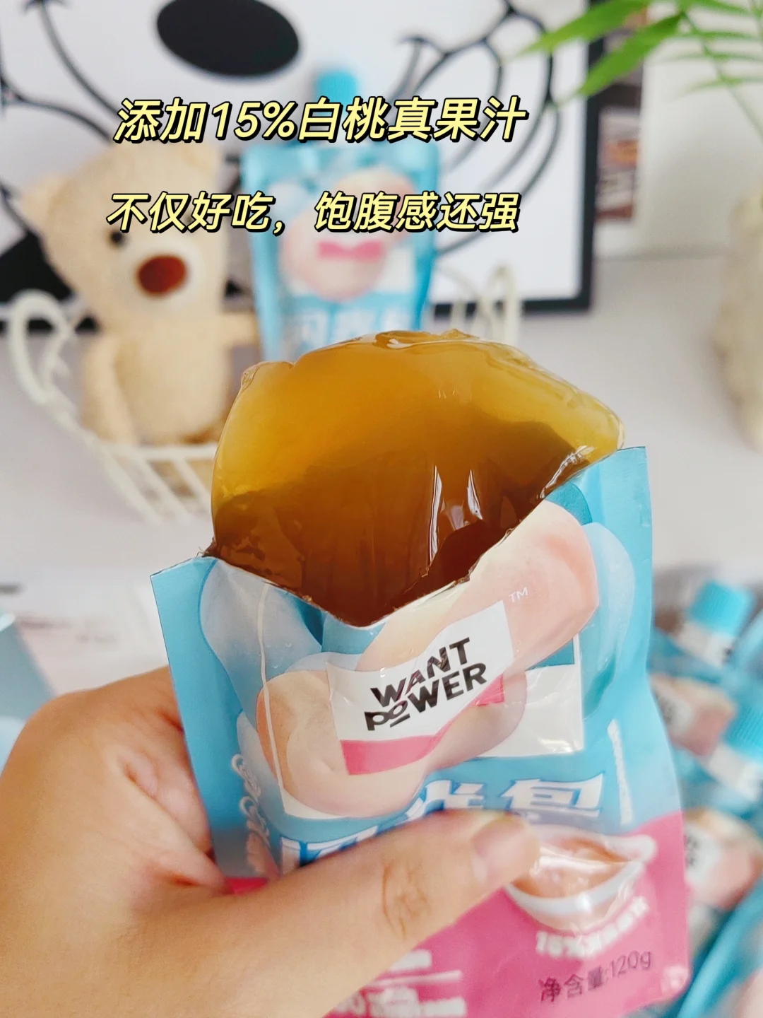 控制体重一个月了,真的很馋甜食啊,众里寻他,终于发现了这个低卡果冻,旺旺旗下的新品牌——WantPower闪光包🔥 不仅0⃣️蔗糖0⃣️脂肪0⃣️添加,而且热量很低!!一袋只有26大卡 放心大胆炫也没有负担。 里面足量添加了300mg白番茄🍅浓缩粉,还有酵母抽提物、红石榴汁浓缩粉等成分,对女生的皮肤都很友好。 里面添加了15%白桃真果汁,一口吃下去,一口爆汁,满嘴桃香,酸酸甜甜的口感,Q弹爽滑💫 无论是直接吃,加牛奶🥛一起吃,还是冷冻一下再吃,都很好吃哦