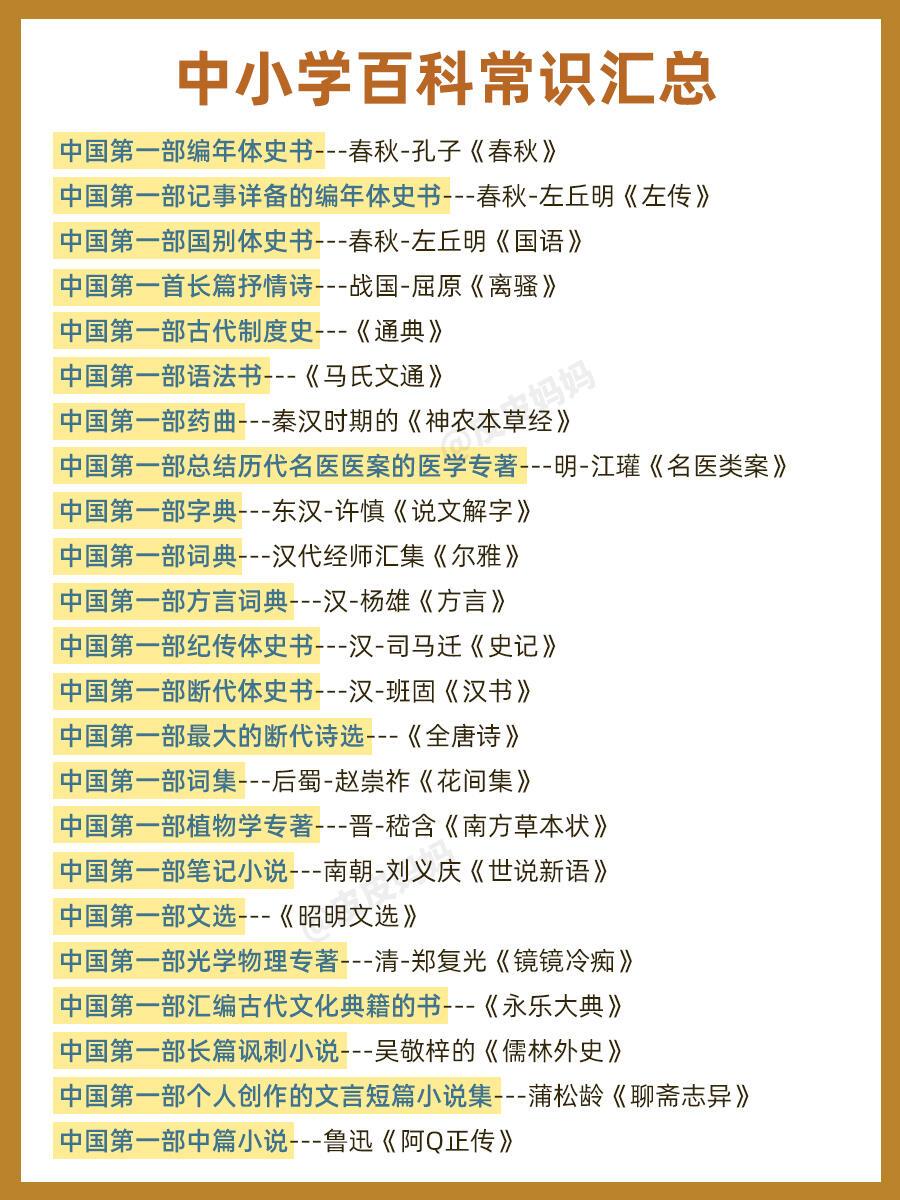 【小学生“必备百科知识”,快来考考你家孩子】 小百科常识积累,不可不知的百科常识,文化常识,中国传统文化,带你涨知识,和孩子一起涨知识!
