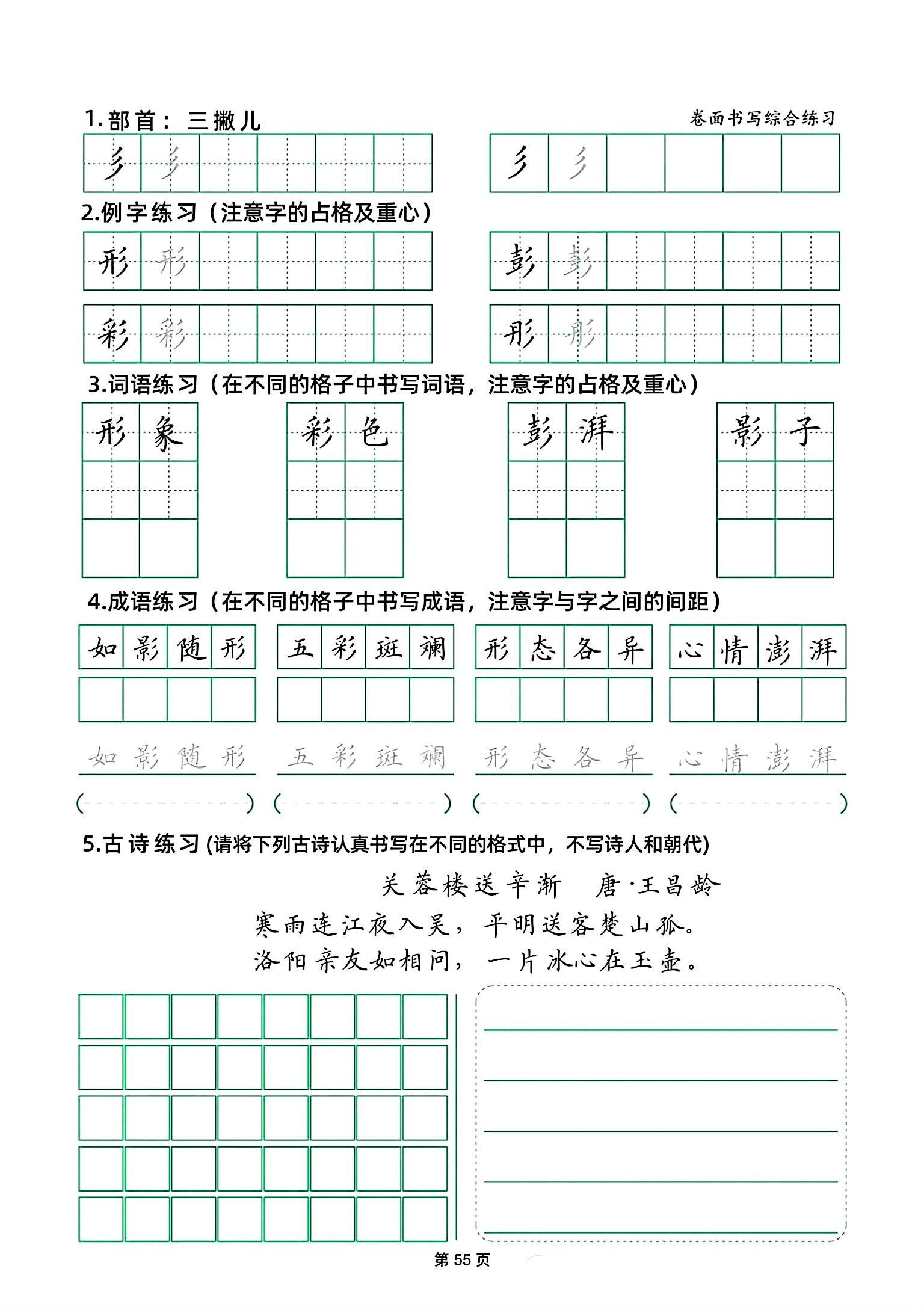 【偏旁加卷面练习!很重要】 硬笔书法练习,书法偏旁!