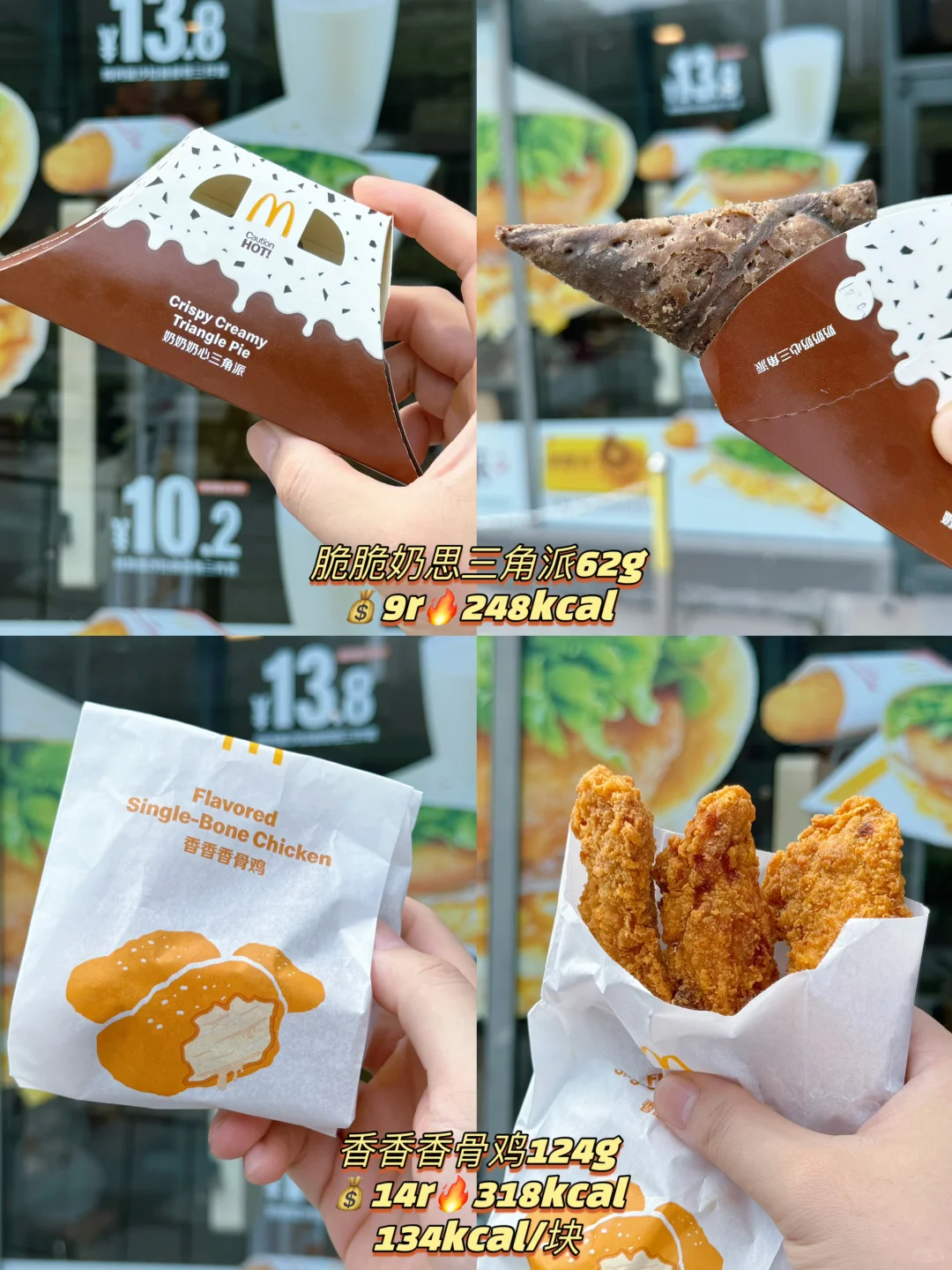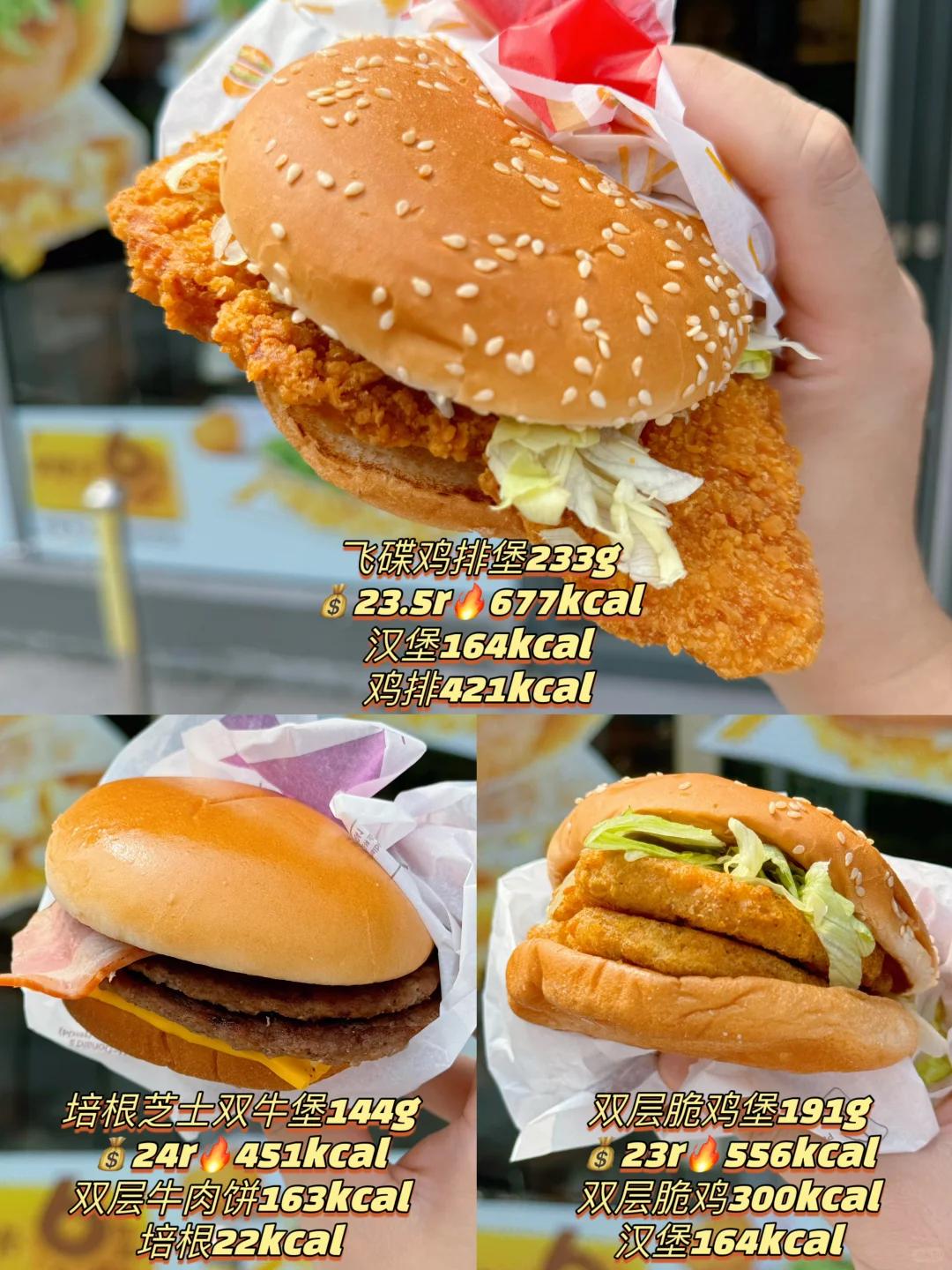 总结: 1️⃣叠叠饼好吃,鸡蛋沙拉鸡扒做成汉堡应该更好吃! 2️⃣飞碟不就是大脆鸡扒汉堡吗[笑哭R]没惊喜 3️⃣脆骨鸡好大一块,好吃 4️⃣奶奶奶心三角派真的好奶,不会很甜! 5️⃣奥利奥可乐是零度可乐加了奥利奥糖浆,我觉得还挺好喝的! 麦当劳 麦门 麦当劳热量 麦当劳新品 不肉 热量测评 热量 新品 鸡肉蛋沙拉叠叠卷 蔬菜蛋沙拉叠叠卷 飞碟鸡排堡 双层脆鸡堡 培根芝士双牛堡