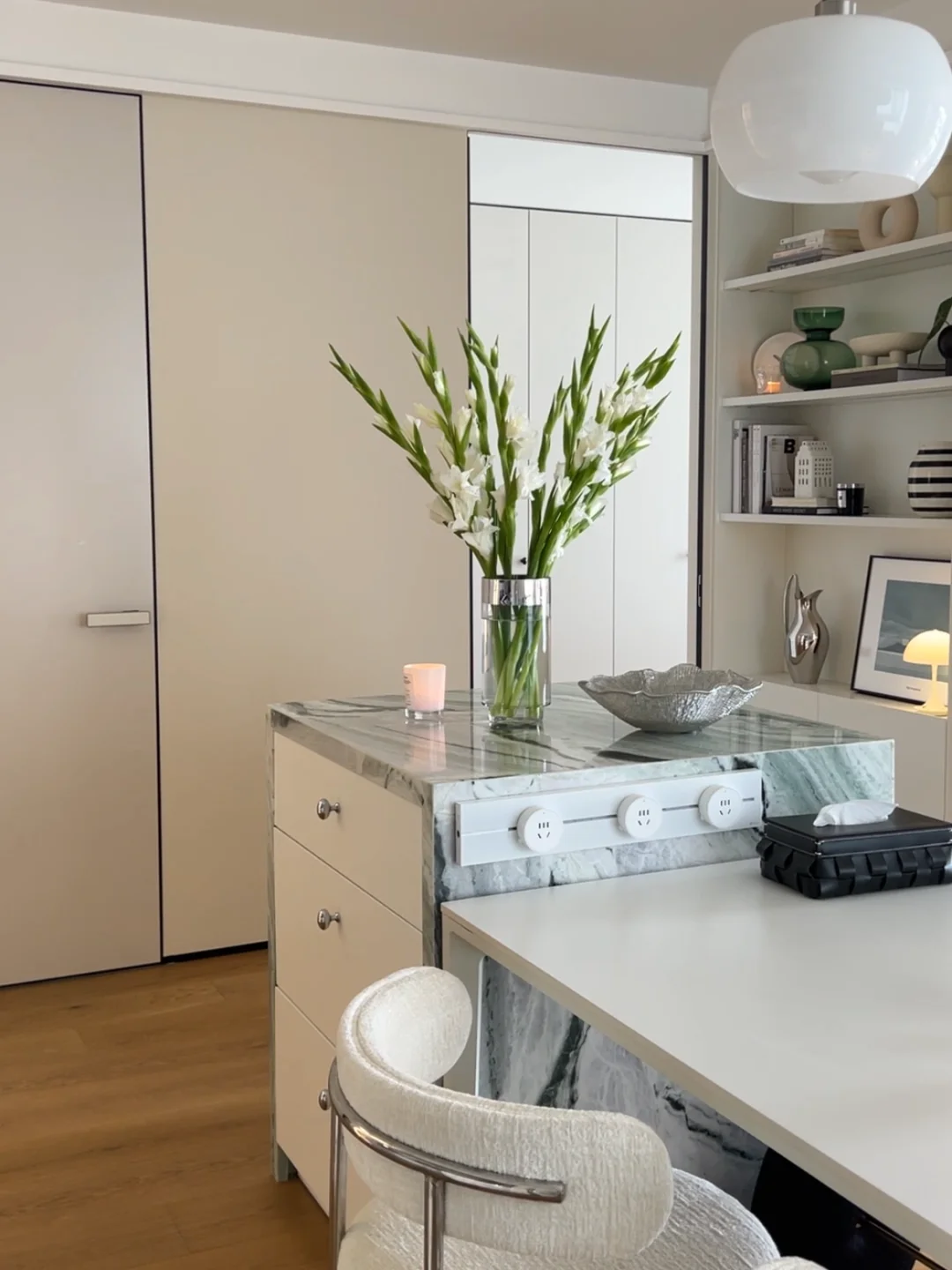 请问岛台后面的柜子是什么颜色和材质的?我咋觉得你房间每样东西都好看