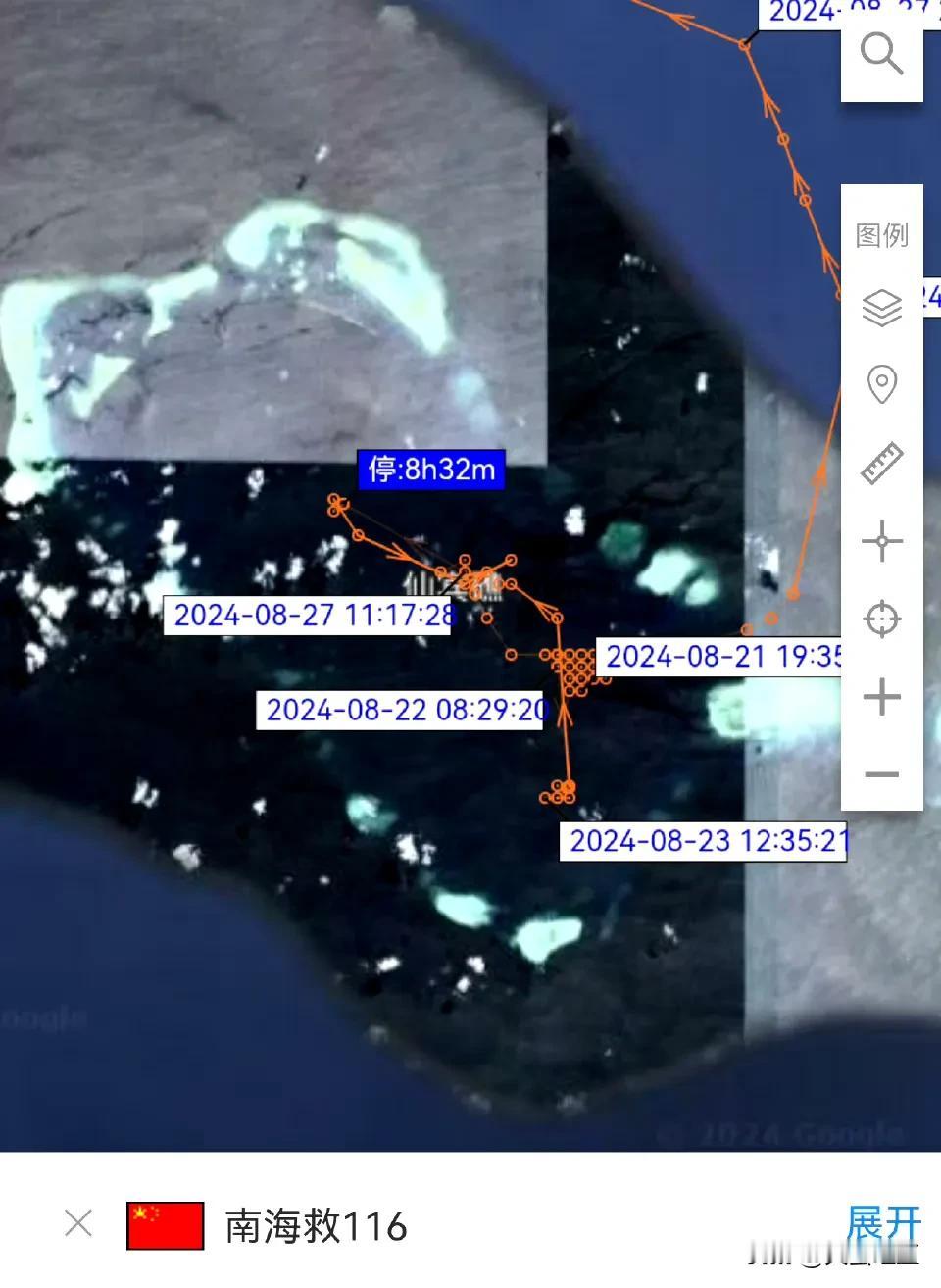 南海AIS信号显示,南海救116轮在8月27号离开仙宾礁潟湖后,于8月28号抵达美济礁,在短暂靠港后当天离开美济礁,并再次驶向仙宾礁方向(如图1),按进度明天凌晨可以抵达仙宾礁附近。 而在南海救116离开仙宾礁潟湖之前,曾在潟湖内大范围活动(如图2),目的不得而知,或是在熟悉地形和路线。#菲律宾# #仙宾礁动态🔥# #南海救116轮# #菲律宾侦察南海#