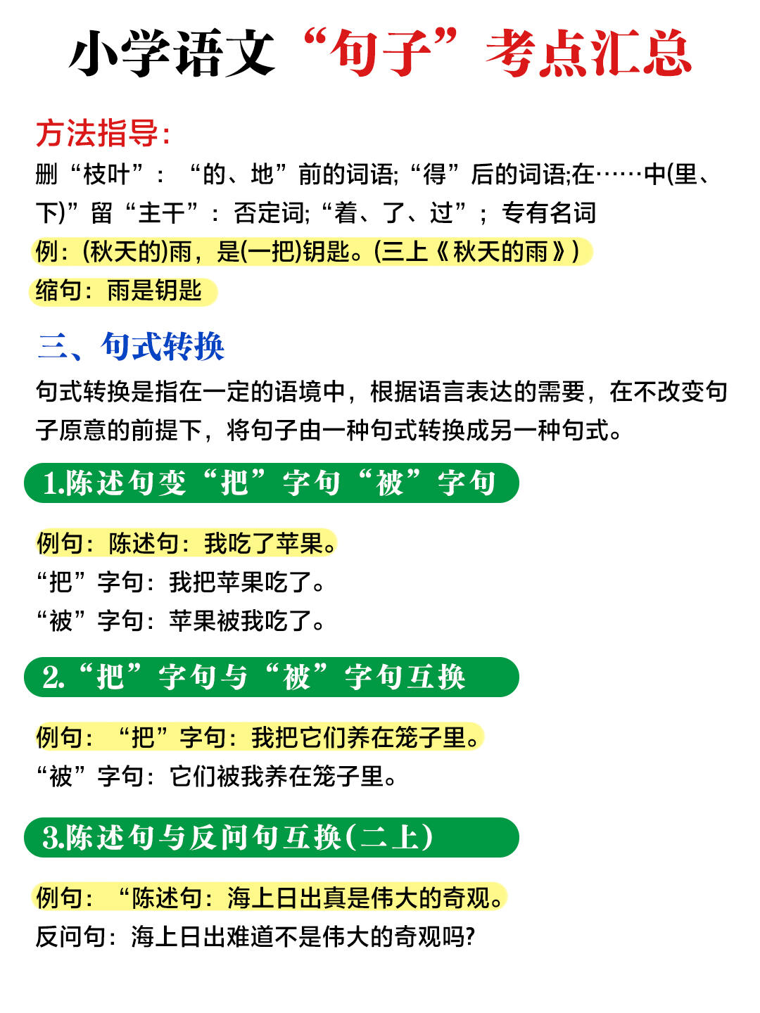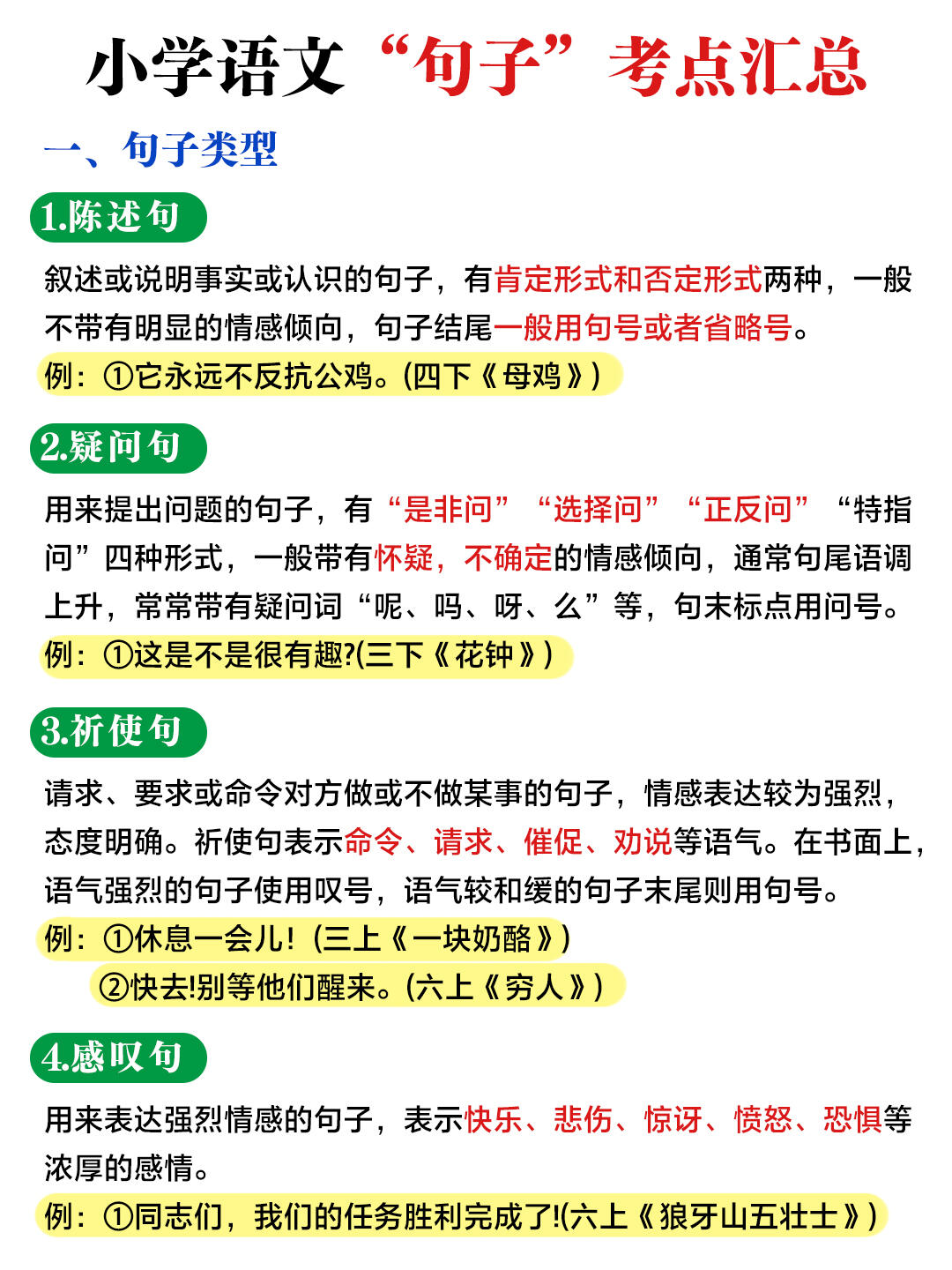 【小学语文丨句子的相关考点汇总!】 句子的相关考点是小学语文的重要知识点!这份资