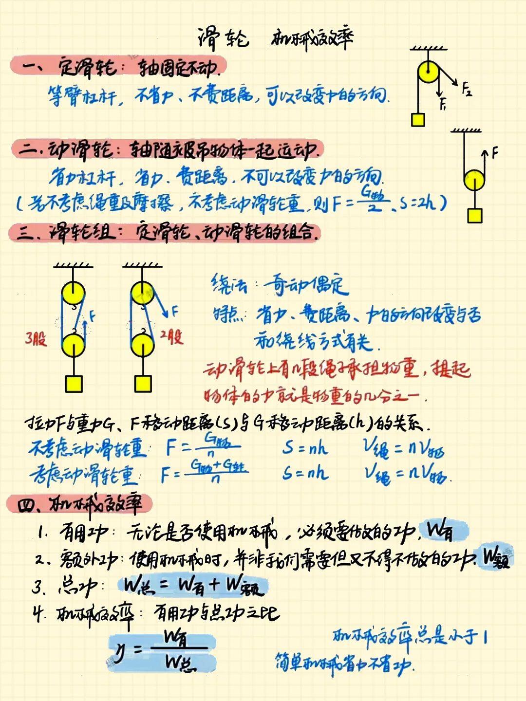 【杠杆、滑轮和机械效率知识点总结】 笔记中归纳的:3种情况下的机械效率计算方法是重点哦!