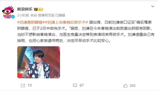 A涅槃老师:一样的病,上个月刚做的手术,对身体和生活还是有影响的,我还在不停咳嗽的阶段,希望以后能恢复的好一些吧。也祝刘谦老师早日康复。