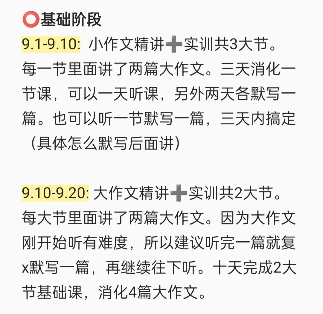 ★9.10-9.20: 大作文精讲➕实训共2大节。