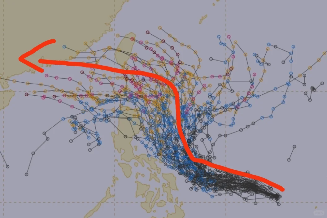 在生成之后,它将向偏西方向转向偏北,最后转向西偏北方向移动。由于副热带高压强度以及他未来形态不能确定,所以这个台风的路径出现了扇形一般的争议,在个人看来,他会先向偏西方向移动在临近菲律宾群岛的时候向偏北方向移动在这个过程中快速加强,移动到巴士海峡附近,由于副热带高压闭合并且势力庞大,它会推动着台风向偏西方向移动。目前我的预测是他会登陆在台湾岛南部或者进入巴士海峡,随后在珠三角一带沿海登陆,录的时间是在9月6号~9月8号。强度可能达到15级以上。