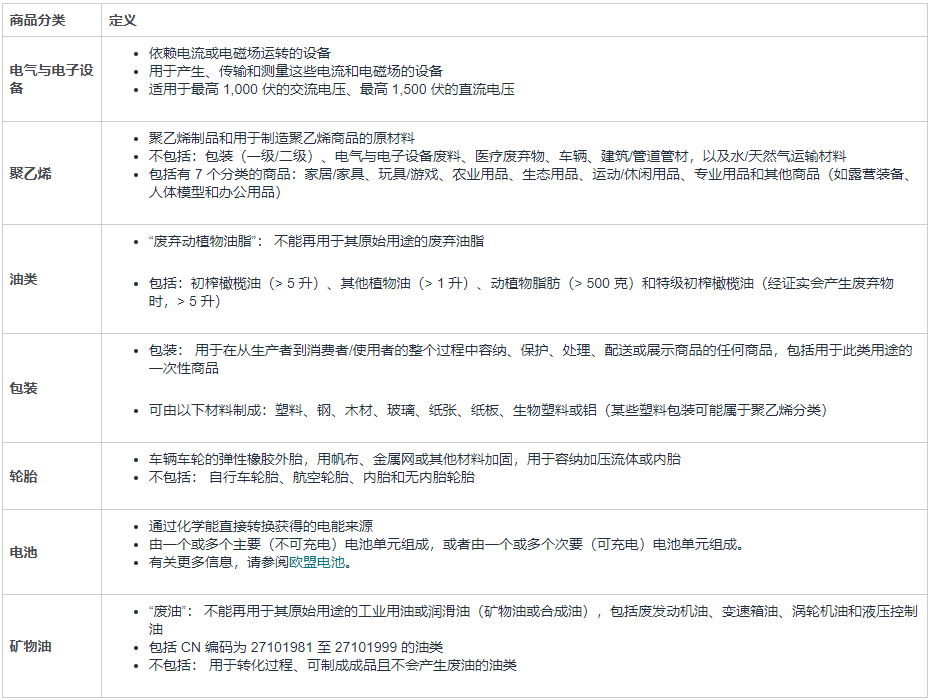 Q:哪些商品在意大利的生产者责任延伸法规范围内?