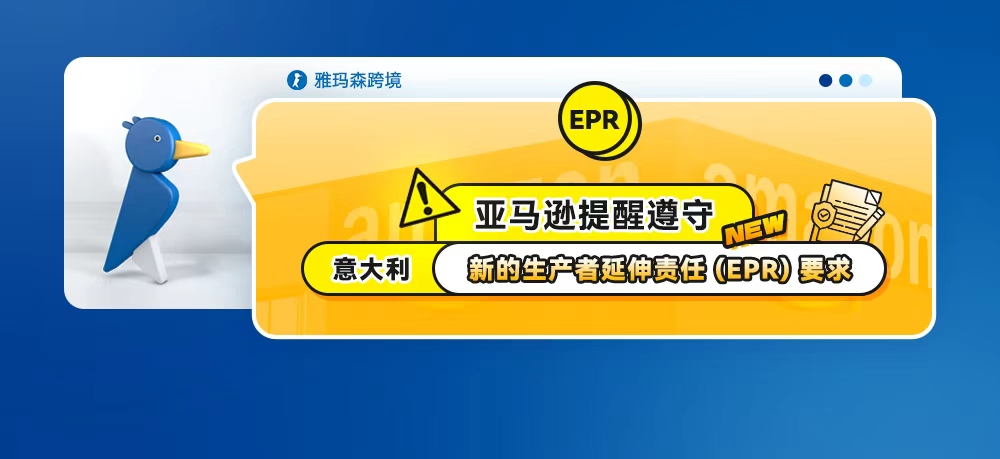 近日,亚马逊发布“遵守意大利新的生产者延伸责任 (EPR) 要求”公告,公告如下: