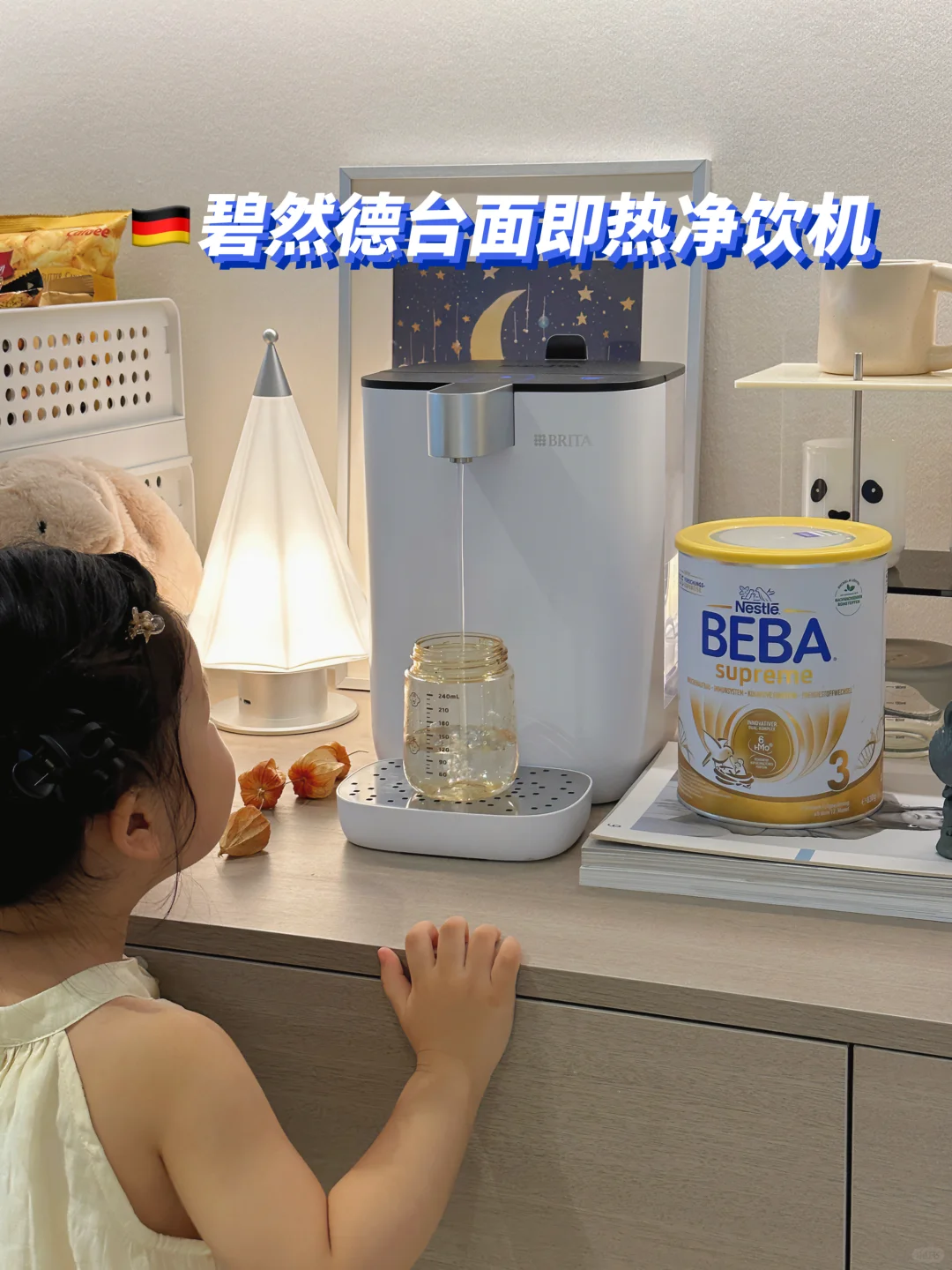 奶粉的冲泡,也离不开好水质的功劳。我在净水这件事上也好好做了功课,选择了同样德系品牌的【碧然德台面即热净饮机 】这台净饮机的过流式紫外线杀🦠技术,能杀灭水中99.999%的细🦠。原装Maxtra+滤芯,不仅可以去除水里的杂质、余氯、重金属(铅、铜),还能保留水中的矿物质。这样的水泡出来的奶才能散发奶粉原本淡淡的奶香。不锈钢厚膜加热无需等待,直接选择45度就可以秒速泡奶。控温控量,150毫升奶自动就冲泡完成,nice