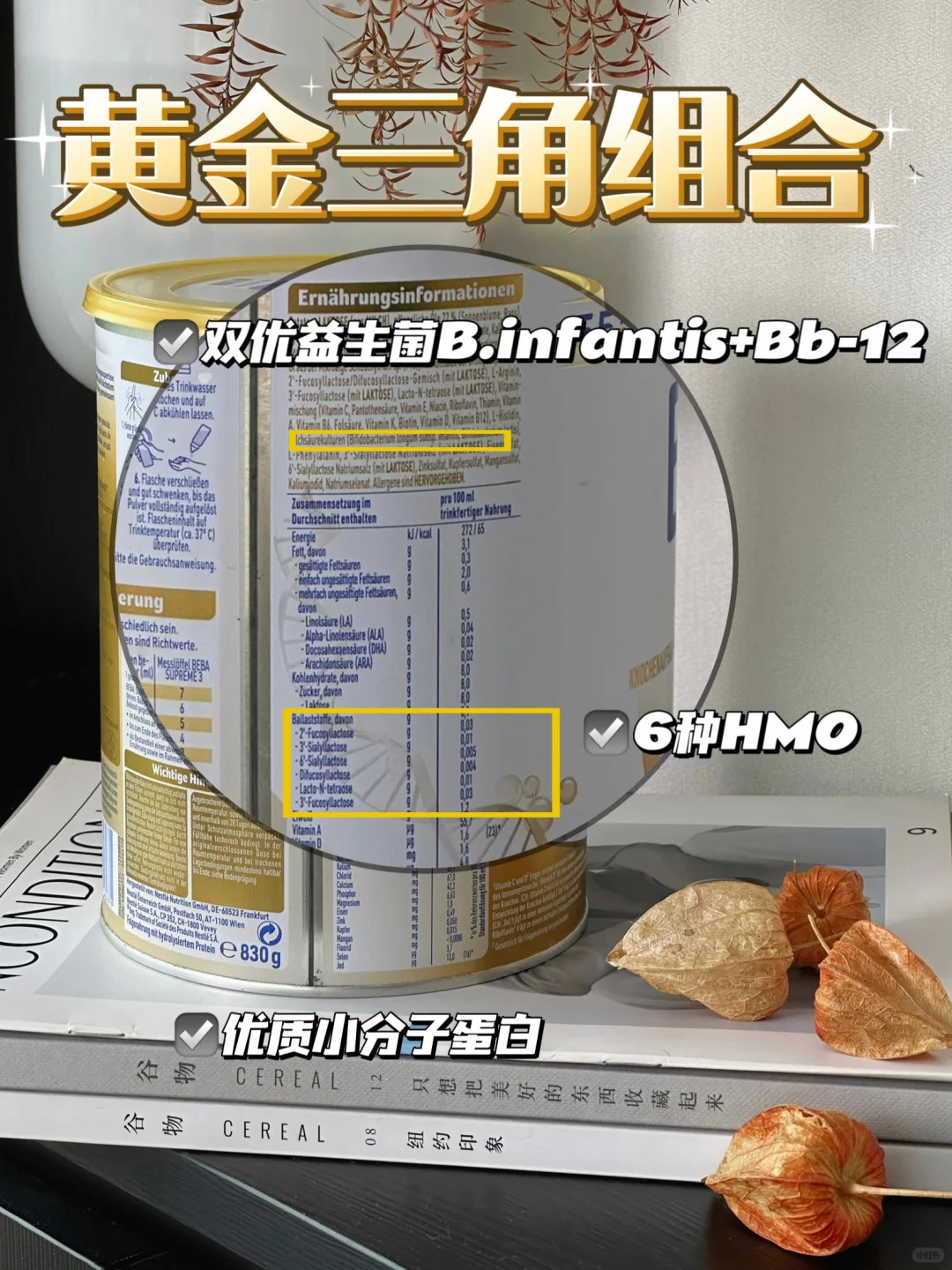 配方含有6种HMO,涵盖了源ru全品类HMO,HMO是初始营养中关键保护力成分。搭配上双优益生菌 B.infantis+Bb-12,其中B.infantis能够和6种HMO强强联合实现1+1>2的功效。为了让宝宝肚肚更好吸收,BEBA奶粉还采用德国黑科技,将大分子蛋白切割为温和优质的小分子蛋白,「6种HMO+双优益生菌+温和小分子蛋白」,构成“黄金三角”组合,帮助宝宝提高肚肚耐受力,让营养全面吸收