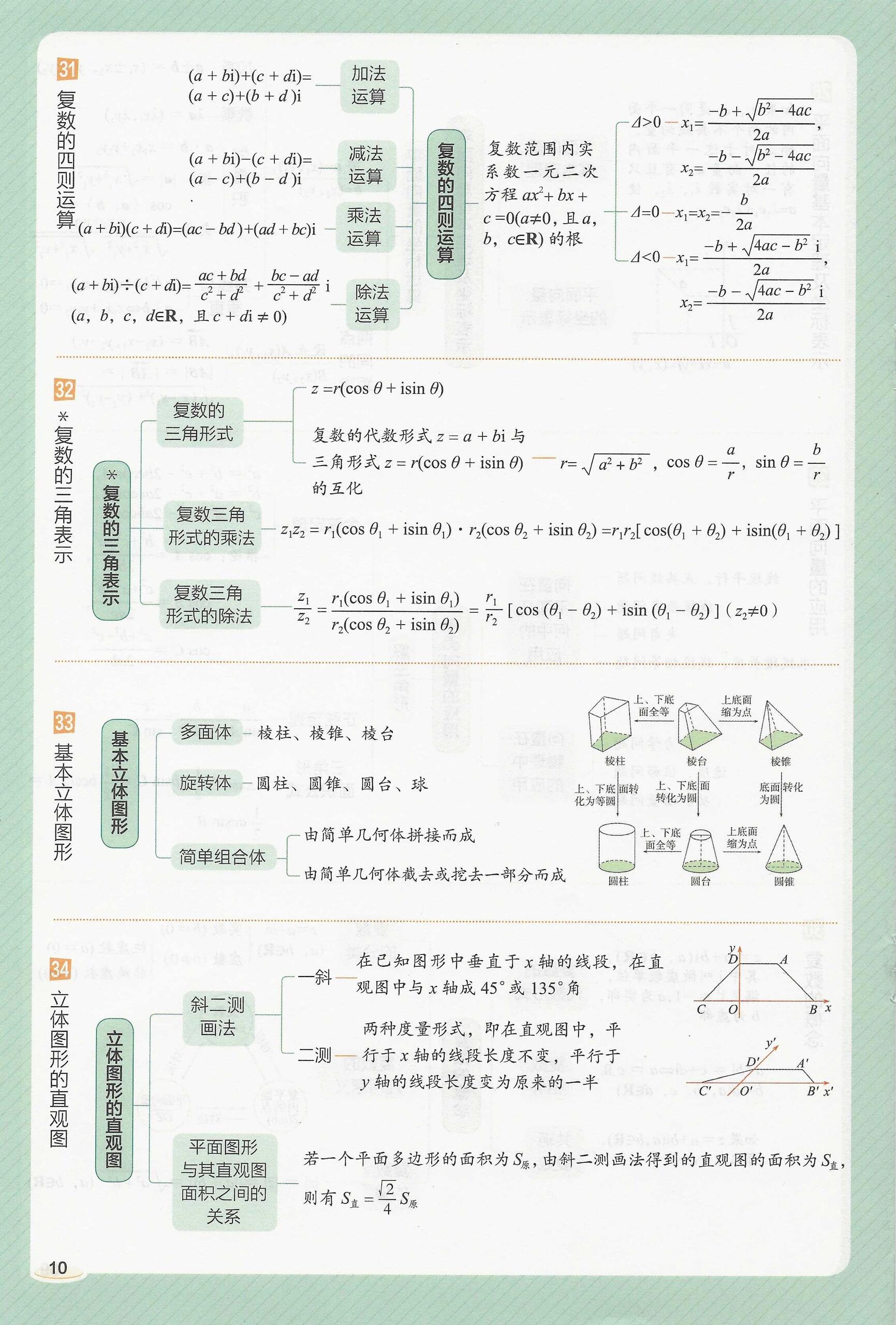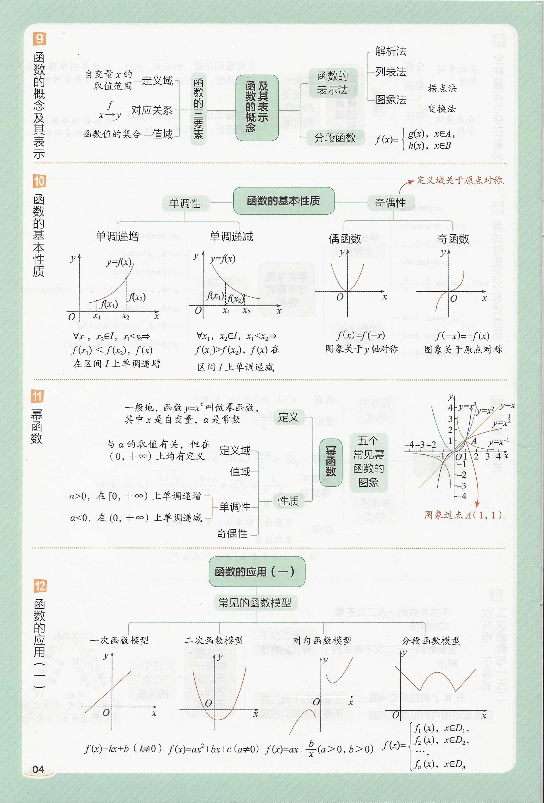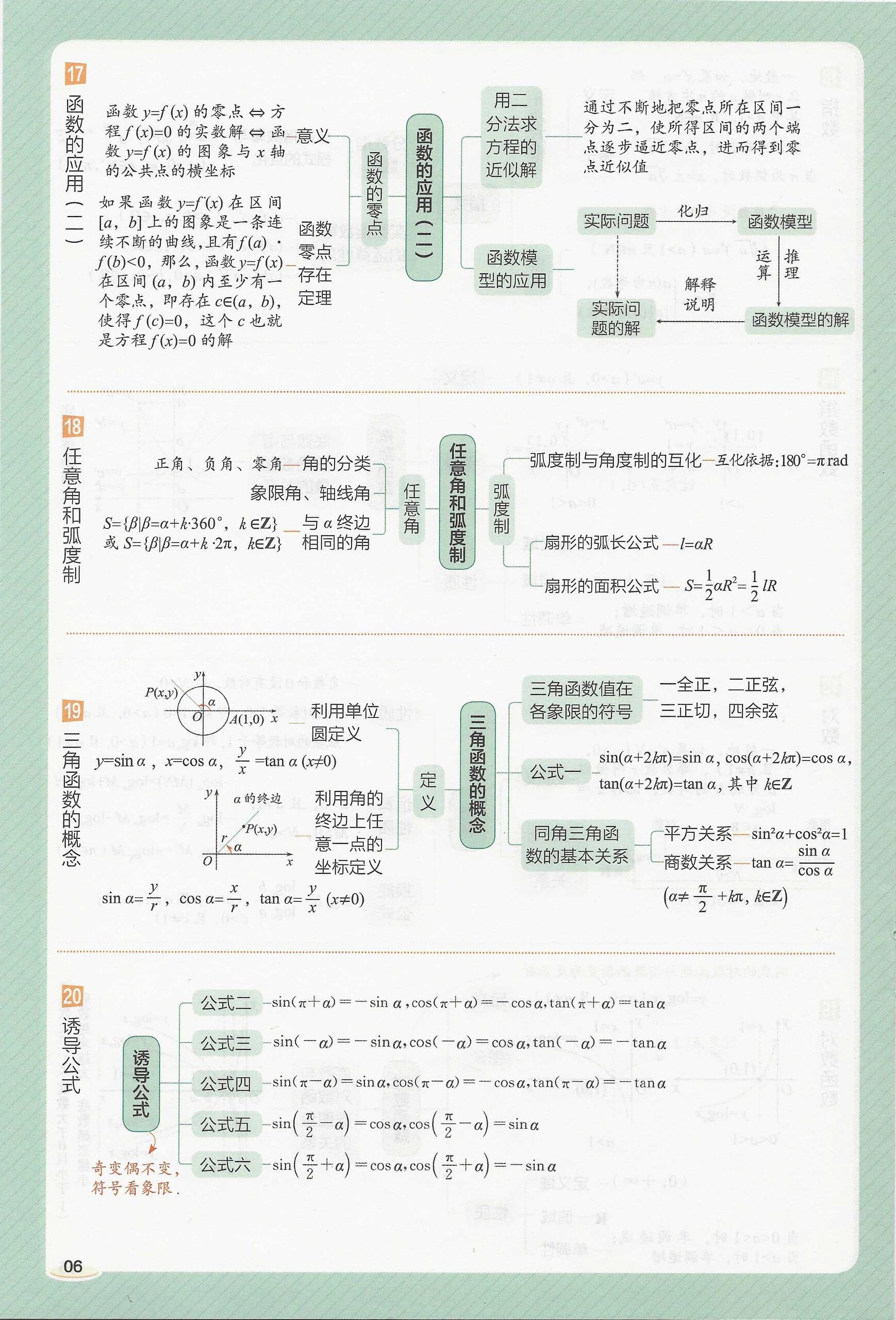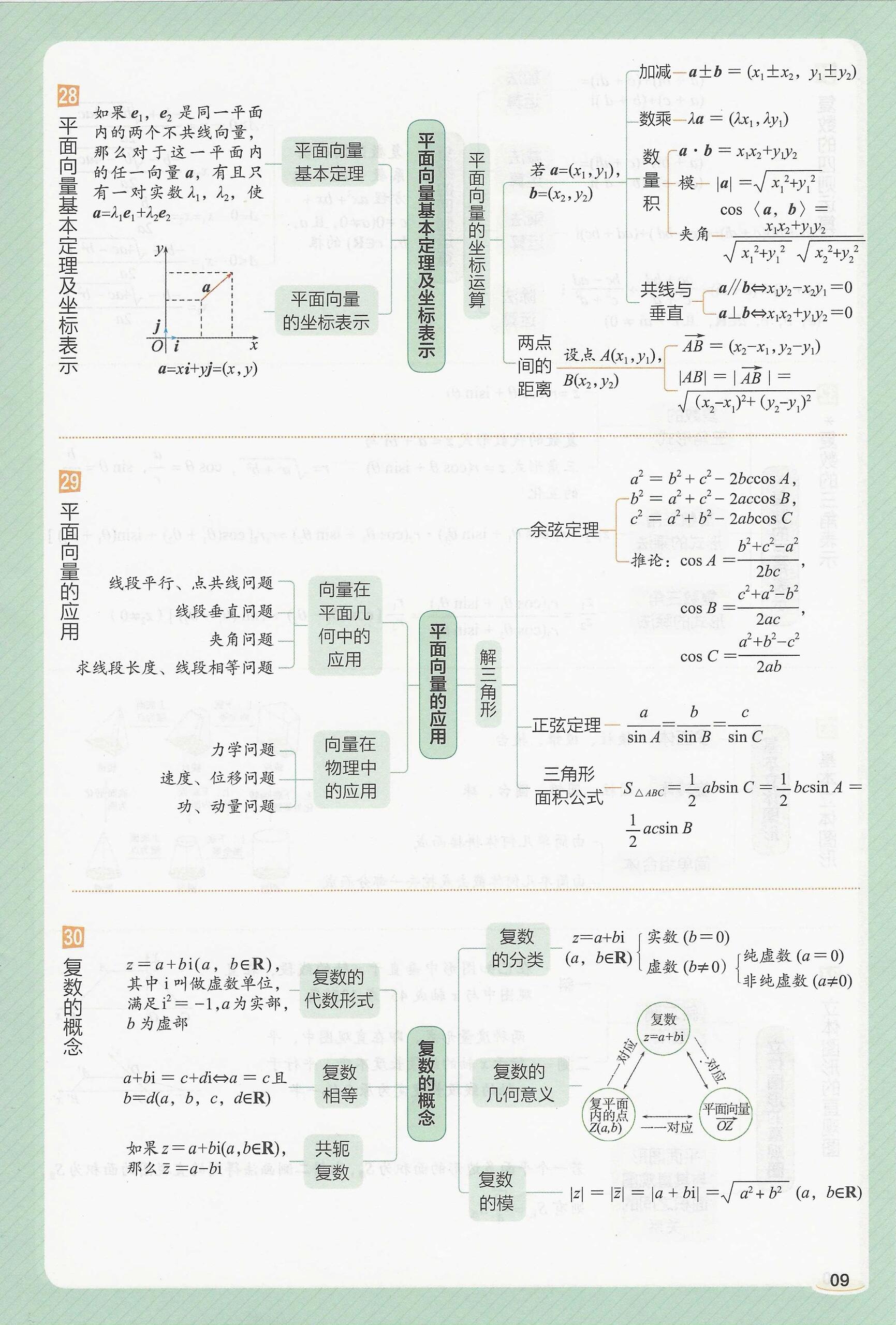 【高中数学思维导图(必修1~2,选修一)】 高中数学思维导图,高中数学课程通常包括以下几个模块: [一]代数:包括实数、代数式、方程、不等式、函数、数列等内容。 [二]几何:包括平面几何、立体几何、解析几何等内容 [三]三角函数:包括角的概念、弧度制、任意角的三角函数、三角函数的图象与性质等内容。 [四]平面向量:包括向量的概念、运算、坐标表示、数量积等内容。 [五]数列:包括数列的概念、通项公式、前n项和公式等内容。 [六]不等式:包括不等式的性质、解法、应用等内容。 [七]概率与统计:包括概率的基本概念、统计图表、统计量、概率分布等内容。 高中数学相较于初中数学,在内容深度、广度以及对学生的思维要求上都有显著的提升。以下是高中数学的一些主要特点: [一]知识点多且深入:高中数学涉及的知识点更多,内容更深入。例如,函数、数列、三角函数、向量、立体几何、解析几何、导数、概率统计等都是高中数学的核心内容,而且每个部分都有大量的公式、定理和性质需要理解和记忆。 [二]抽象性增强:高中数学更加注重培养学生的抽象思维能力。很多数学概念都是抽象的,如函数、向量、导数等,需要学生具备较高的抽象思维能力和空间想象能力。 [三]逻辑性加强:高中数学更加注重逻辑推理和证明。许多数学问题需要通过逻辑推理来找出答案,而不仅仅是简单的计算。此外,数学证明也是高中数学的一个重要组成部分,需要学生掌握证明的基本方法和技巧。 [四]综合性提高:高中数学题目往往综合性较强,一道题目可能涉及多个知识点。因此,学生需要具备综合运用所学知识解决问题的能力。 [五]学习方法的转变:高中数学的学习方法也需要发生转变。学生需要更加注重理解和思考,而不仅仅是记忆和模仿。同时,还需要注重知识的归纳和总结,形成自己的知识体系。 [六]注重实际应用:高中数学中有很多知识点与现实生活紧密相关,如概率统计、数列、函数等。通过学习这些知识点,学生可以更好地理解数学在现实生活中的应用,提高解决实际问题的能力。 [七]考试难度加大:高中数学考试难度相对较大,题目往往更加复杂和灵活。因此,学生需要具备扎实的数学基础和良好的解题能力,才能在考试中取得好成绩!