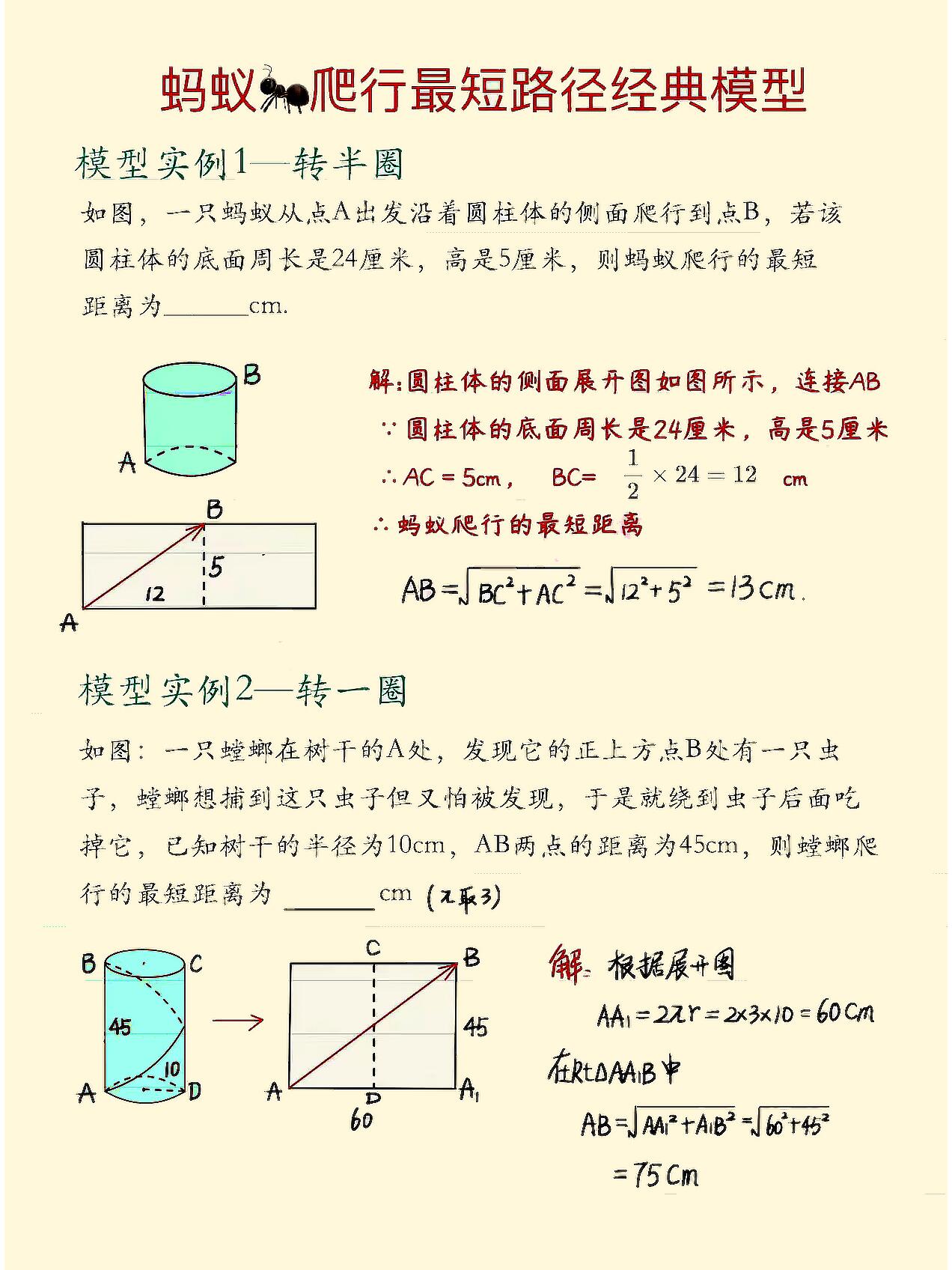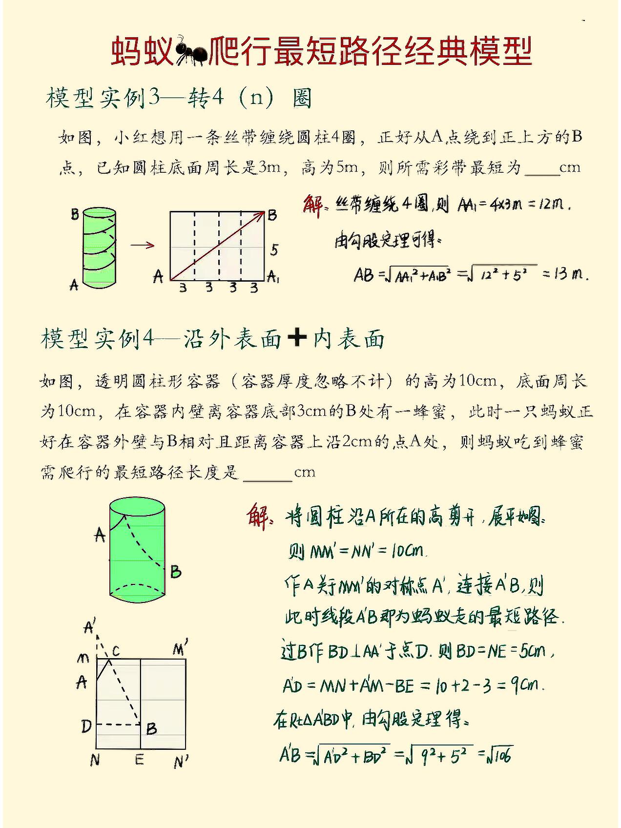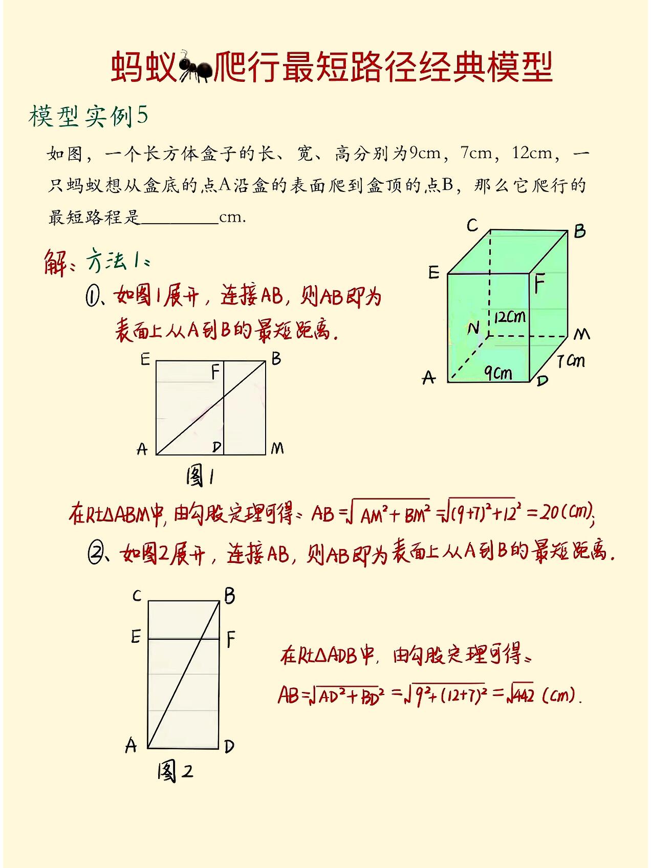 【勾股定理的应用:蚂蚁爬行问题】 这份笔记包含了《勾股定理》章节中的重要的应用模型,即:蚂蚁爬行问题。 除了这两个模型外,笔记在开头归纳了勾股定理的定义,还有考试热门题型:验证勾股定理的常用方法,即等积法。还有勾股定理的逆定理、方程思想等,内容丰富!