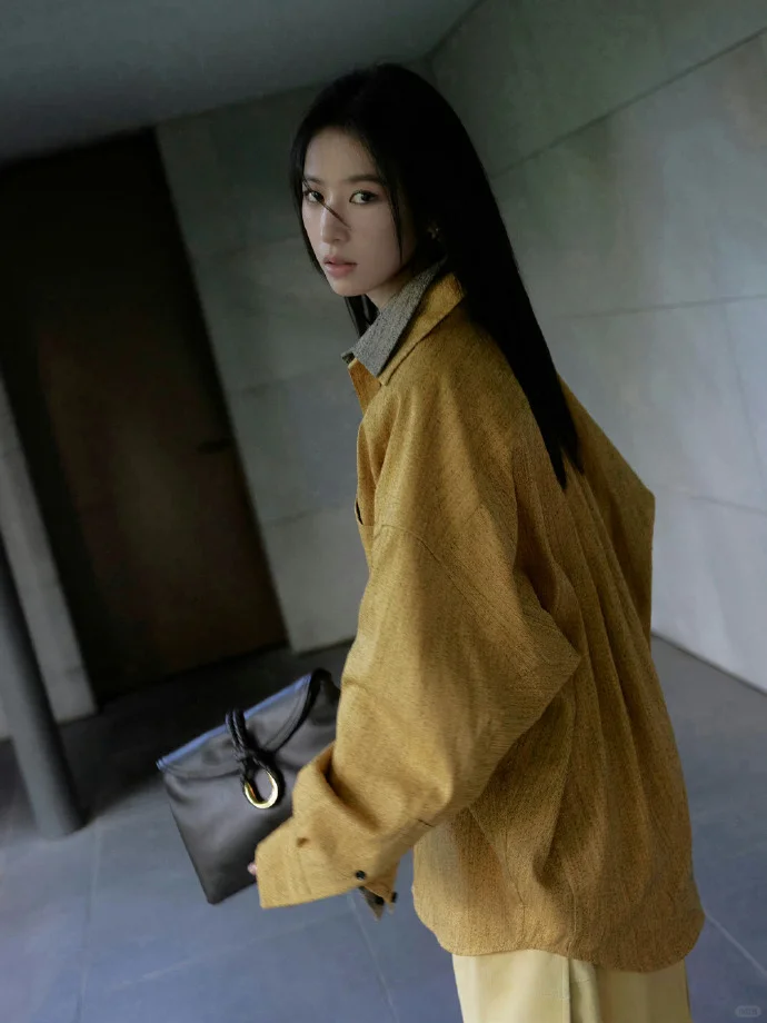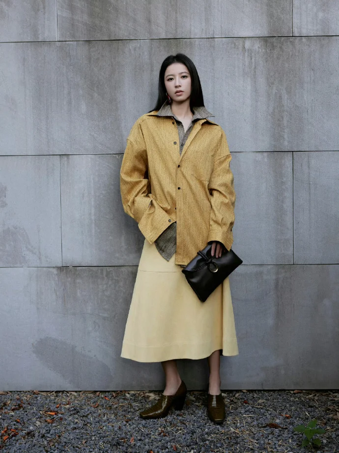 灰色系裤装造型的都市冷感风,黄色系叠搭裙装的利落时髦感,配上黑长直和烟熏妆,完美演绎的秋日OOTD穿搭,展露个性魅力姿态。