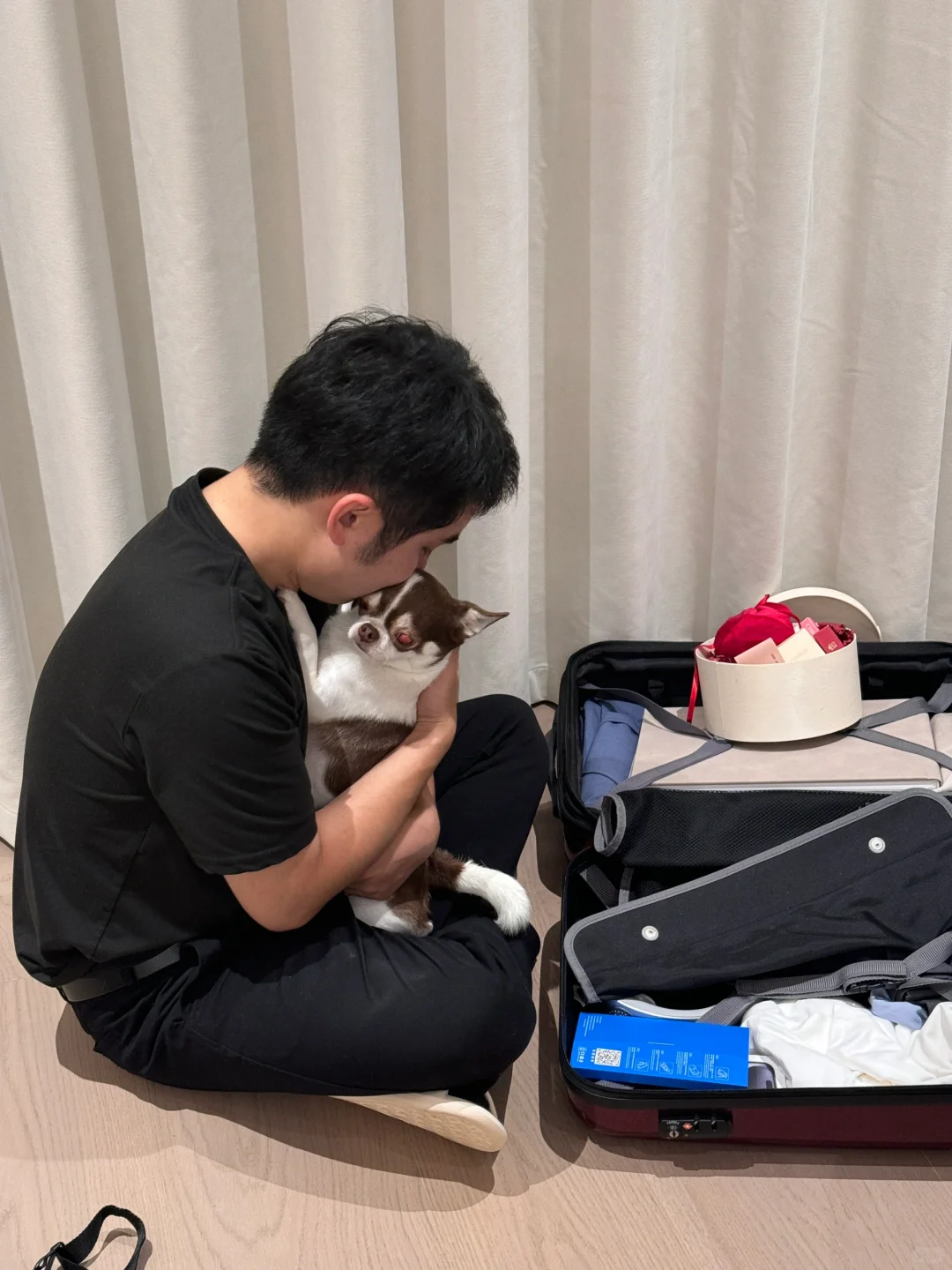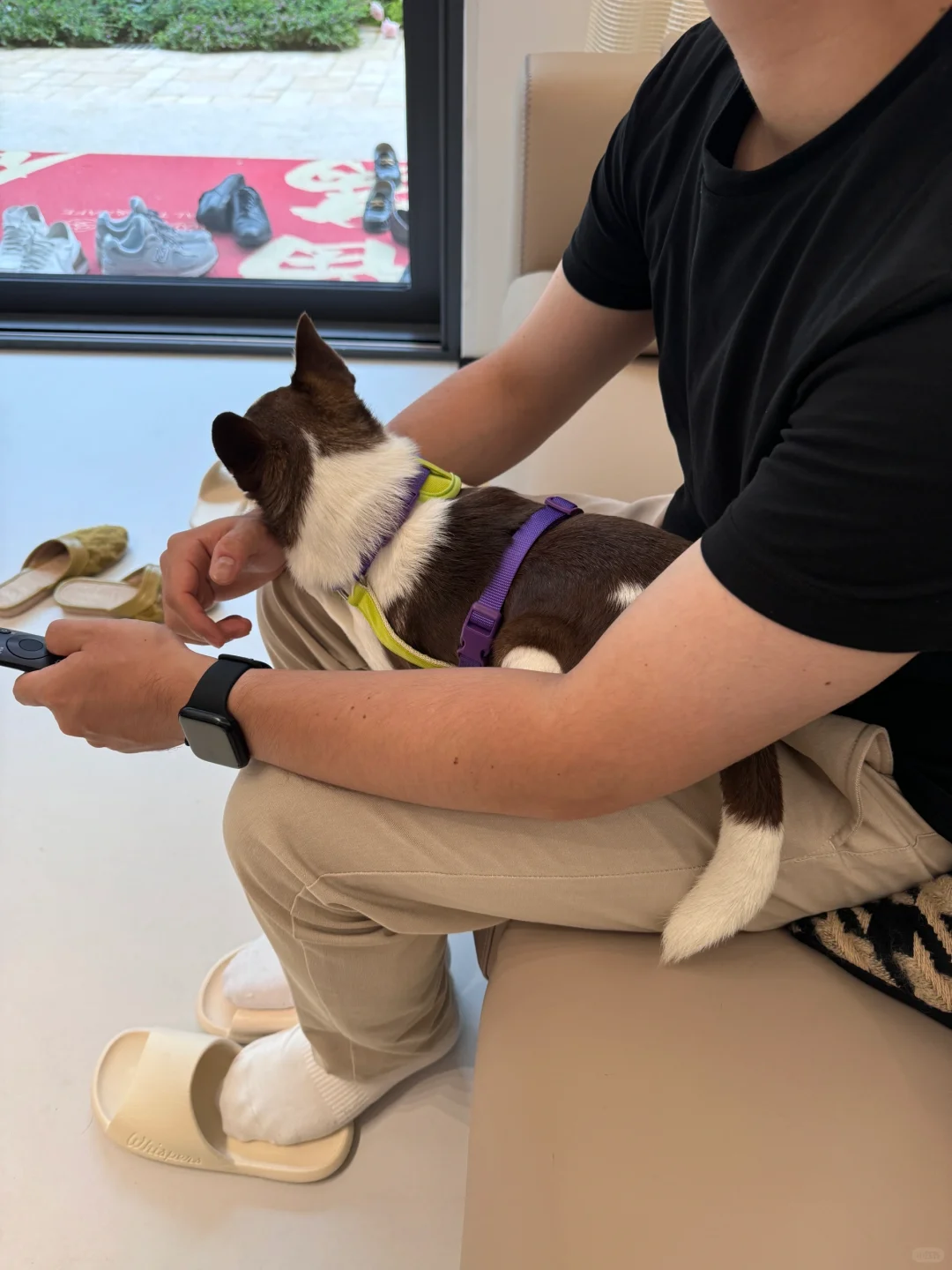 扑满满在爸爸怀里像个撒娇的小宝宝