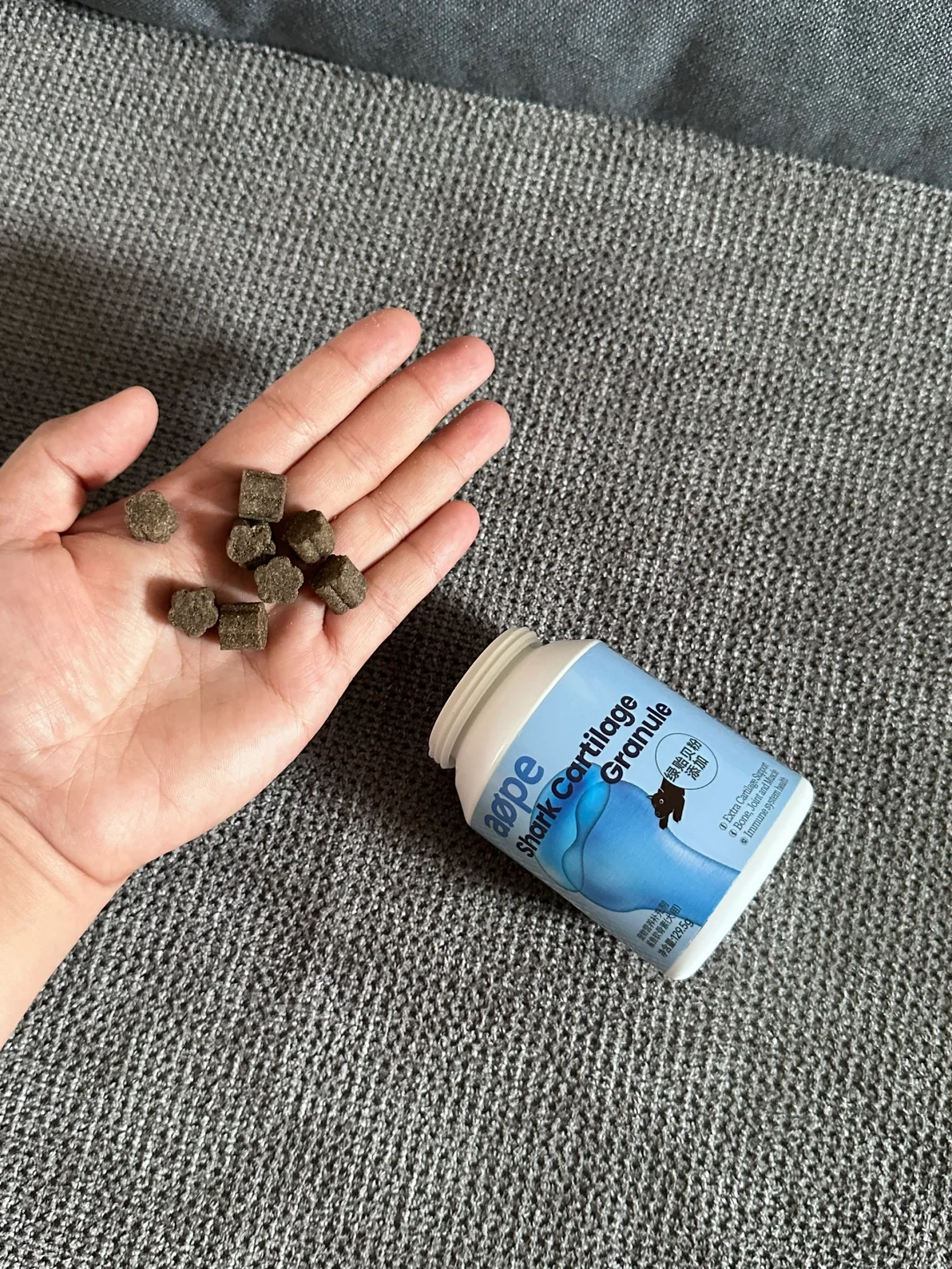 -适口性好。这一款aope鲨鱼软骨素,憨憨是真的很爱,每次都很快炫掉啦~