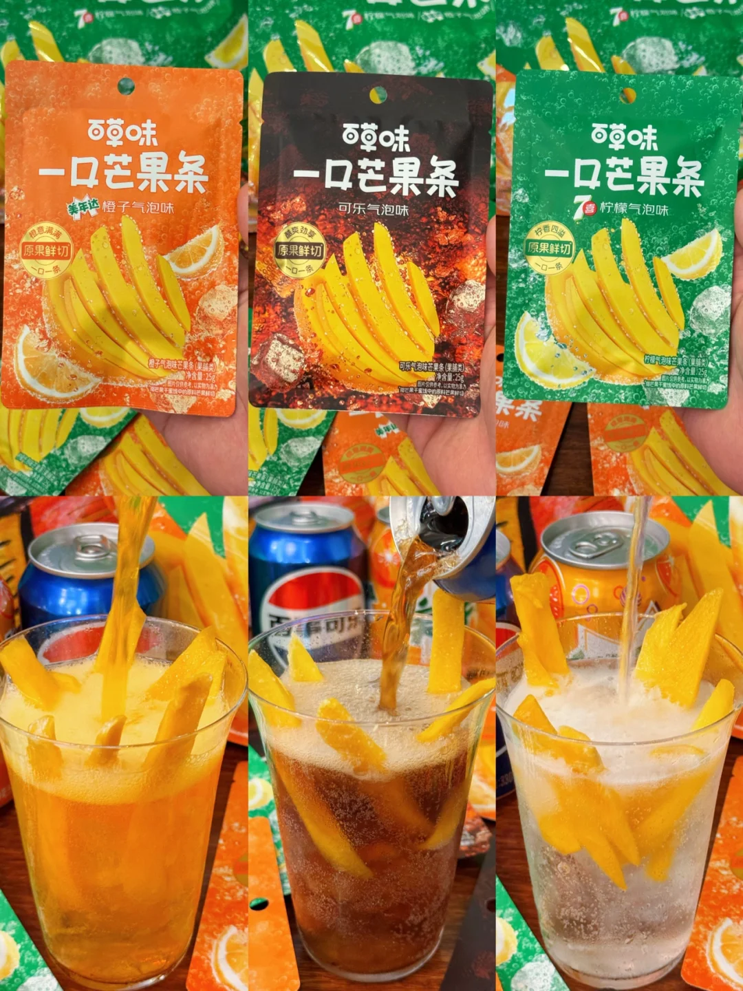 ✨7喜·柠檬气泡味芒果条 柠檬的清香加上芒果的甜美,简直太配了!每一口都清爽解腻,满嘴都是柠檬和芒果的双重美味,绝对是一秒爱上的组合!